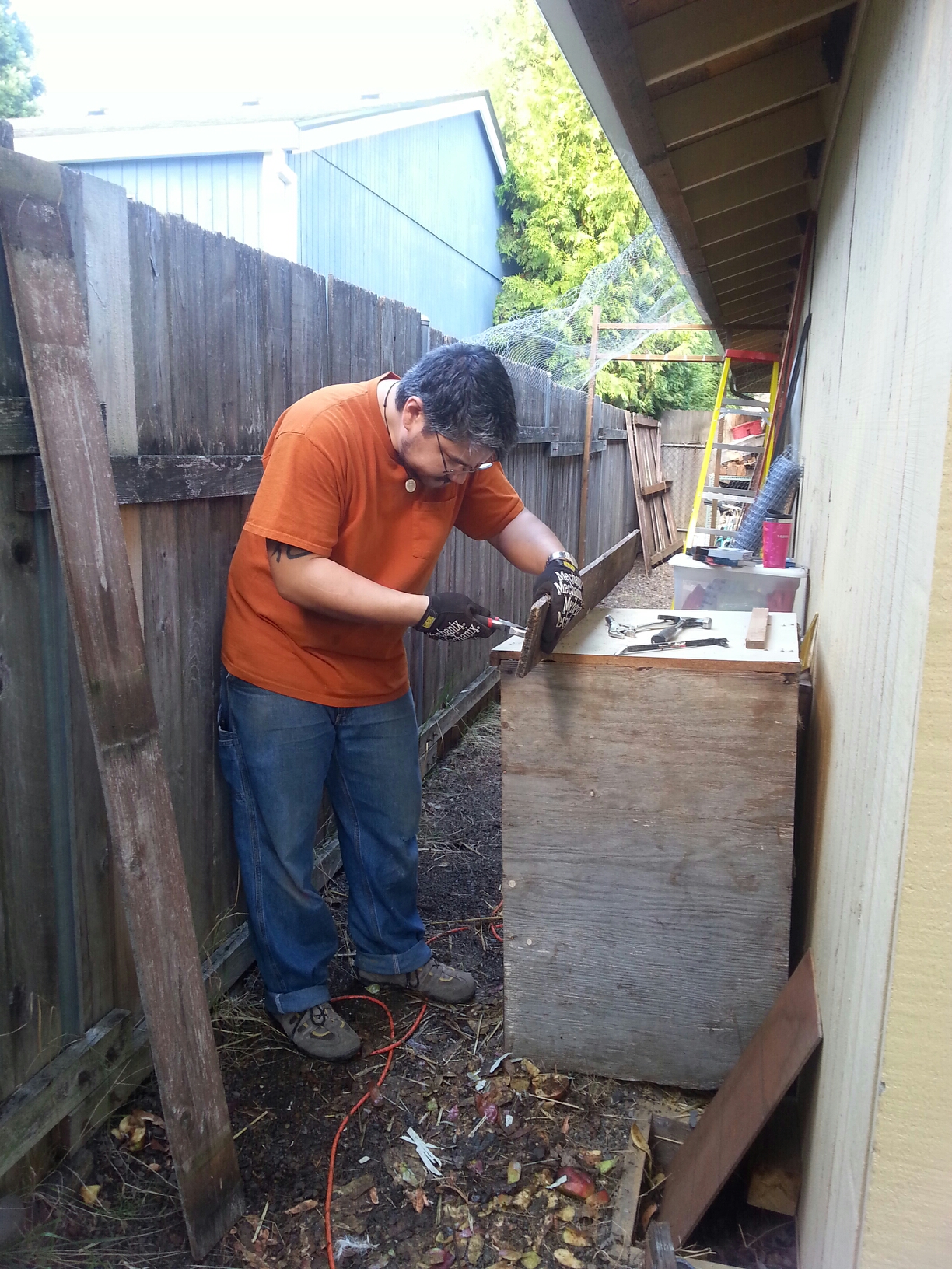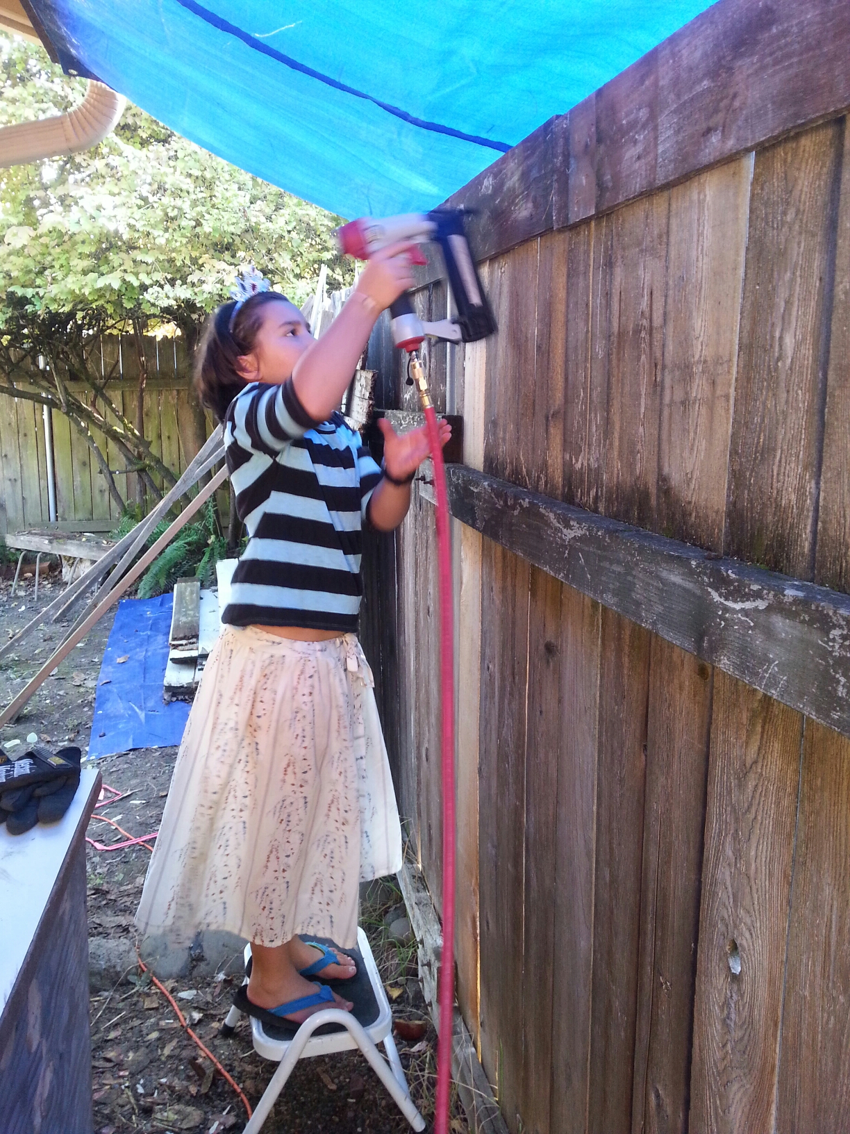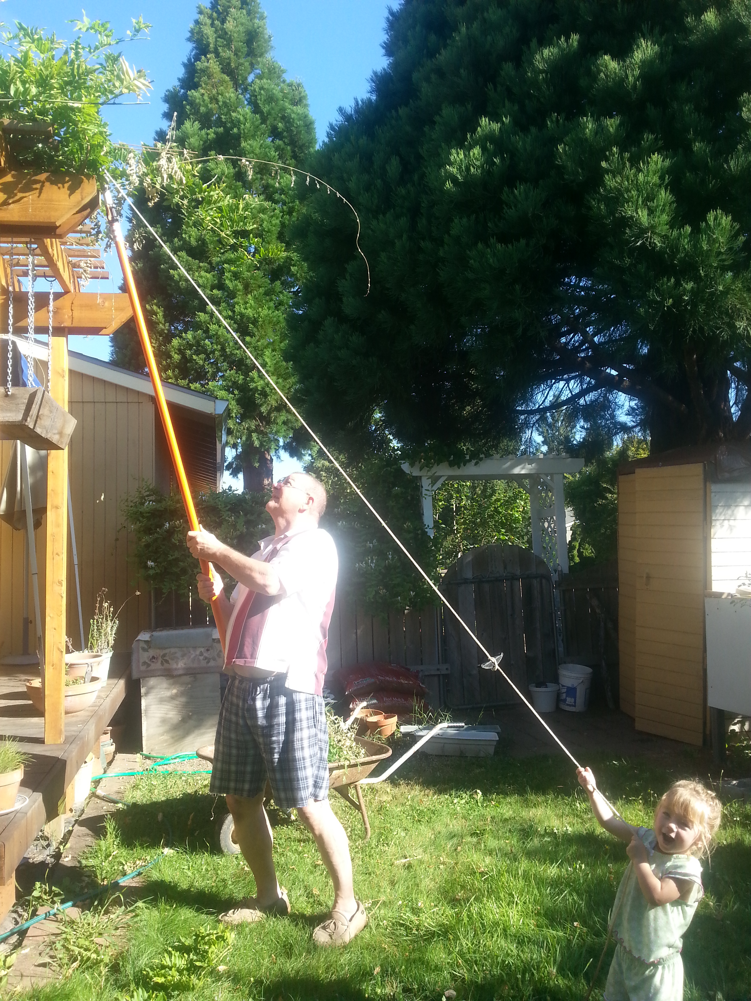 As I said, she loves to help. Here she is helping her grandpa with the trimming. Look at her face!