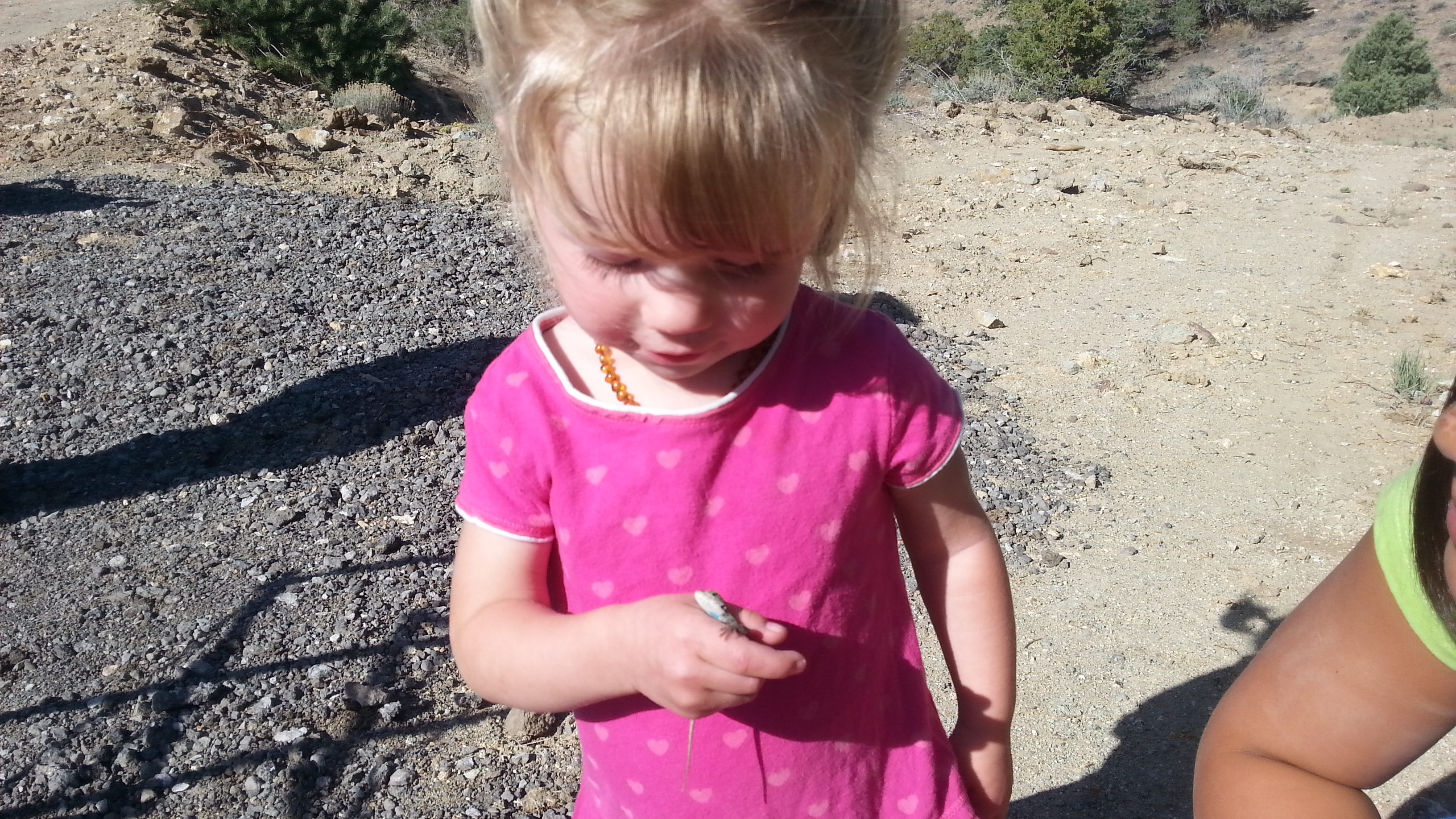 Not afraid of creepy-crawlies. She is enthralled with lizards and all kinds of bugs. (Not so fun when she hands you something and when it drops into your hand you see that it is a live ant!)