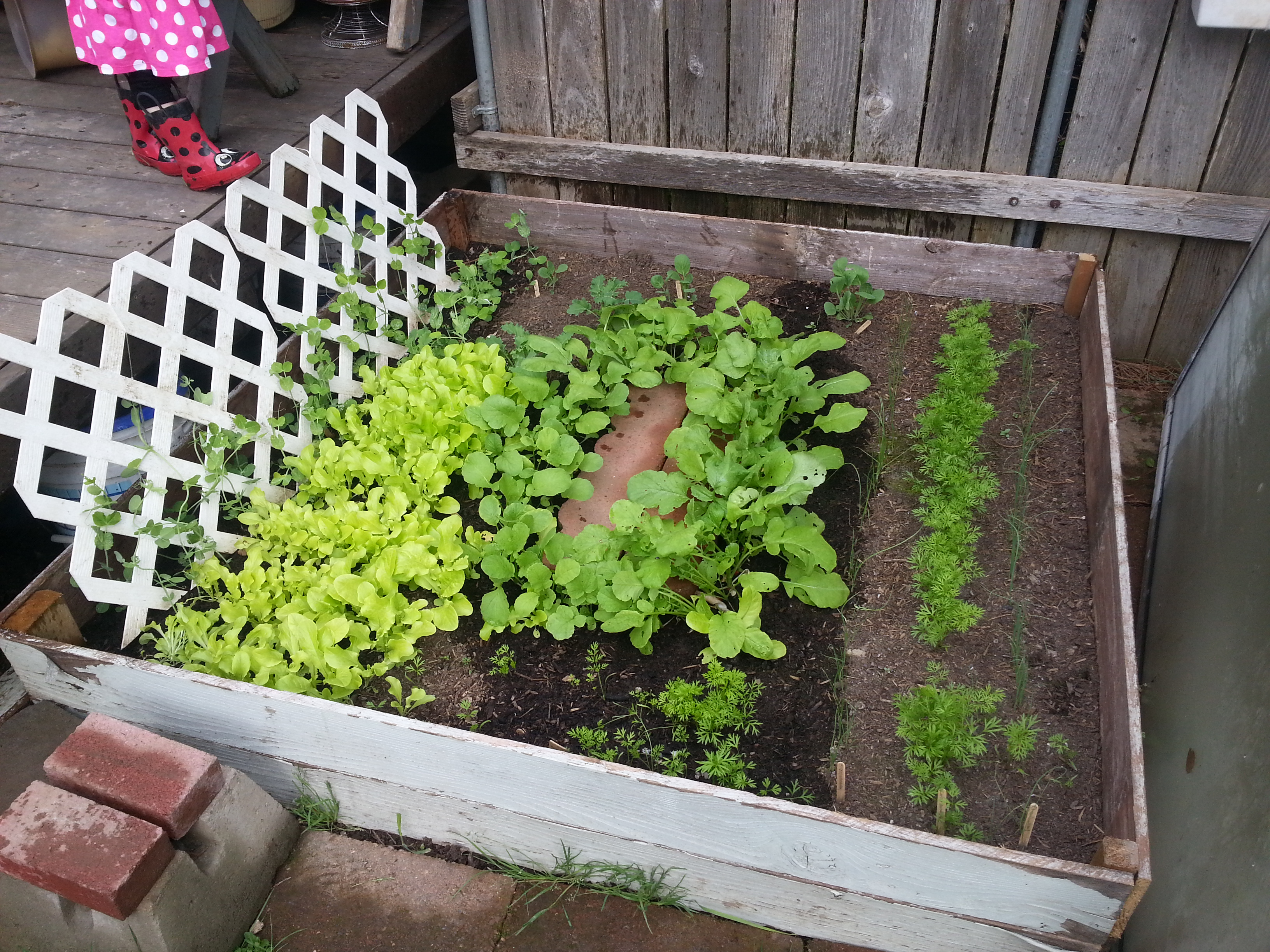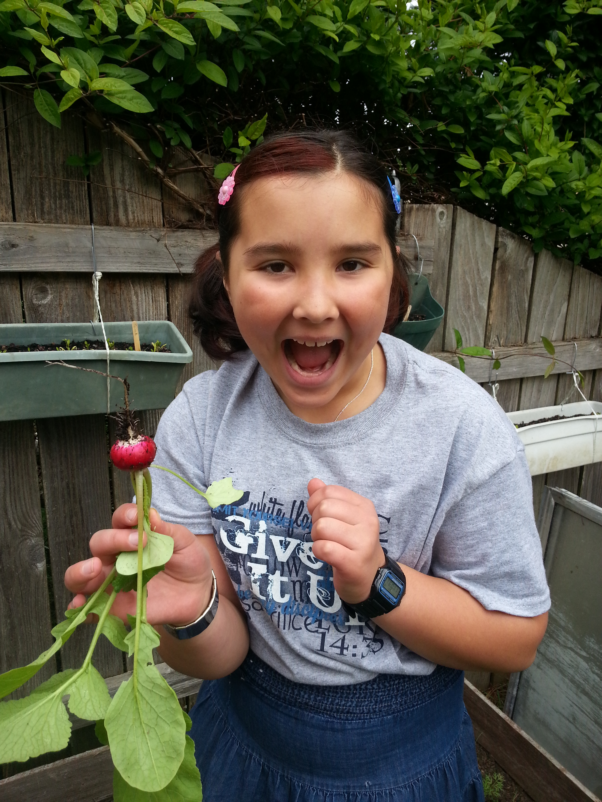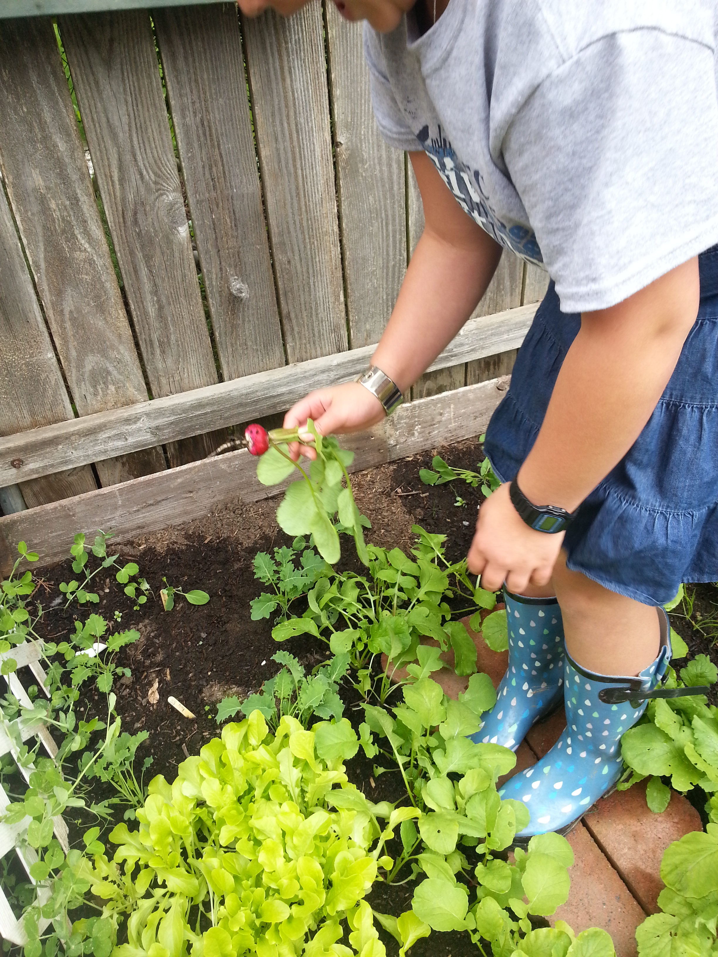 So, I walked to the chicken run where I had already dumped the contents and in no time at all, the girls were happily munching on radish and carrot tops from the garden.