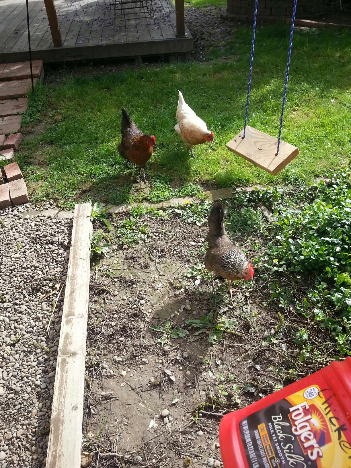 Just to test my theory, I walked over to the compost. My three groupies followed me. I walked across the yard and they quickly made their way over.