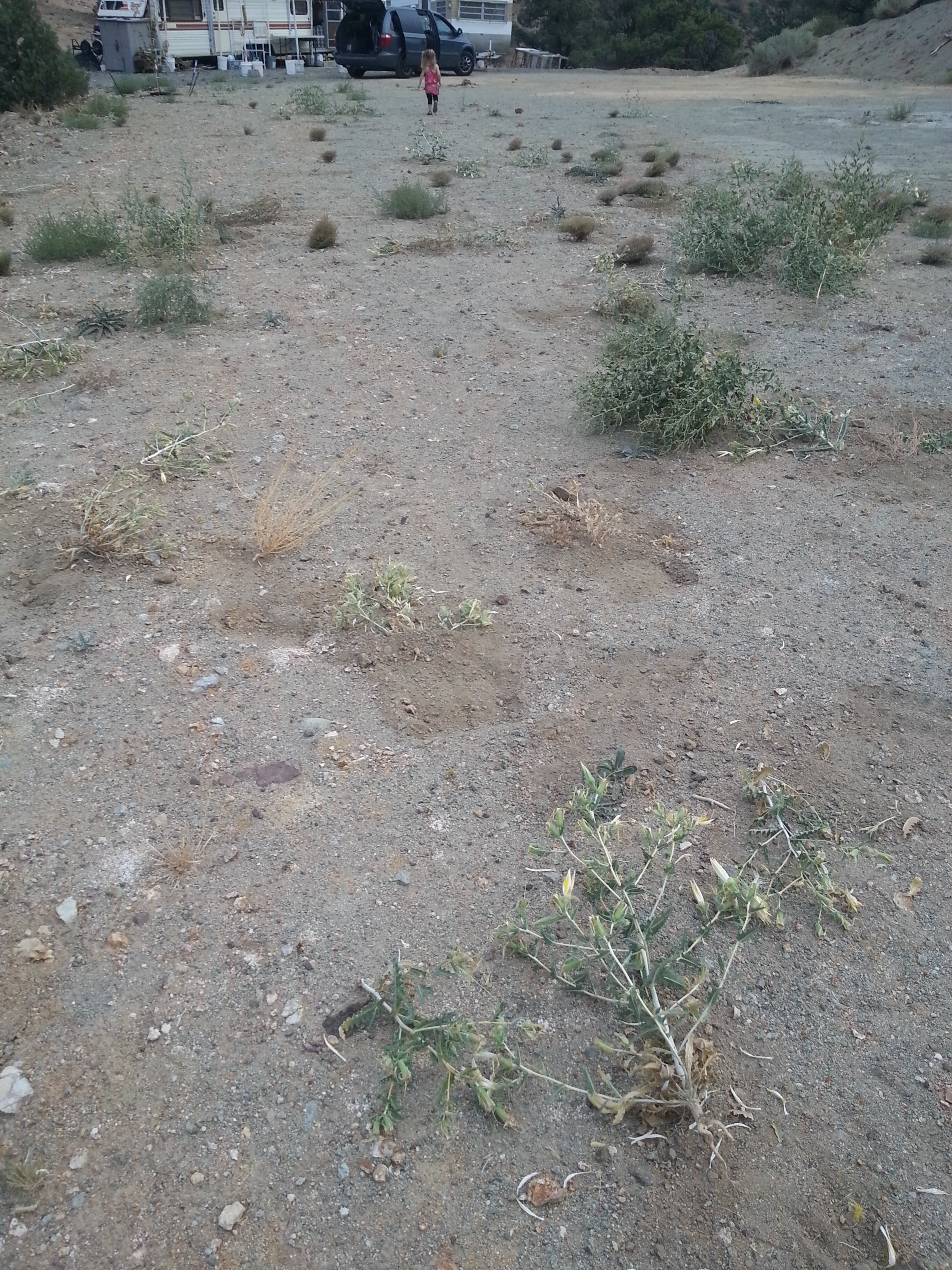 At any rate, here we are in Nevada once again. The other evening, Flower Girl and I went up to Castle Rock with 7 gallons of water to put on our trees.