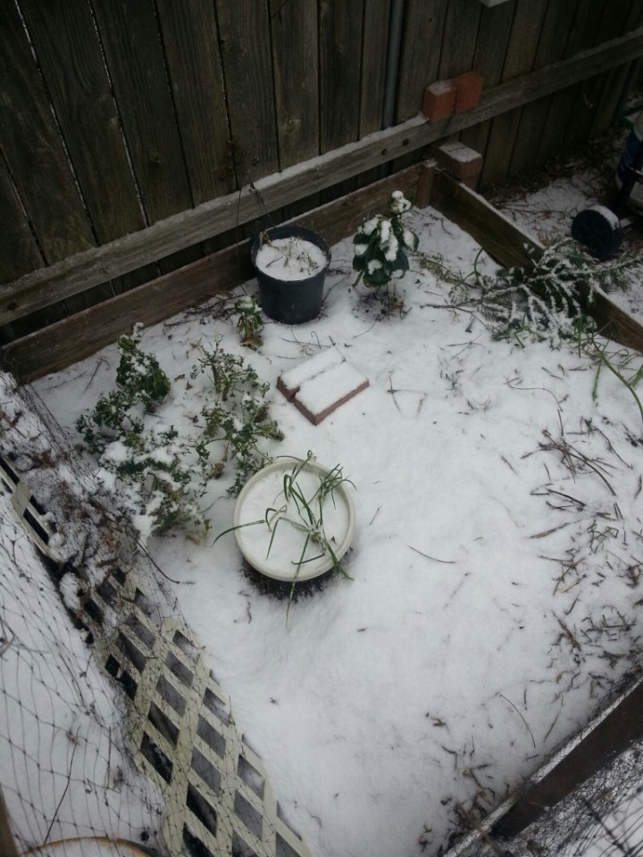 My little 25sqft garden with the caterpillar eaten kale and aphid eaten brussels sprouts, neither of which did I harvest much of because I was too busy to deal with the pests.