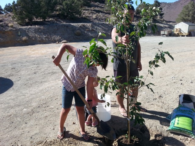Princess Girl actually helping to shovel dirt into the newly planted tree.