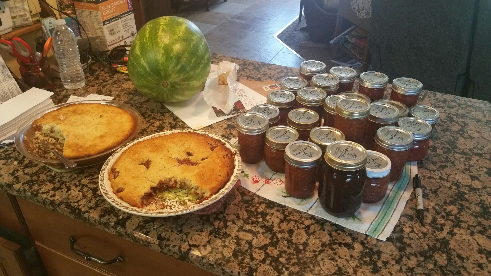 The end result was 27 cups of jam using three different recipes, and two cobblers.