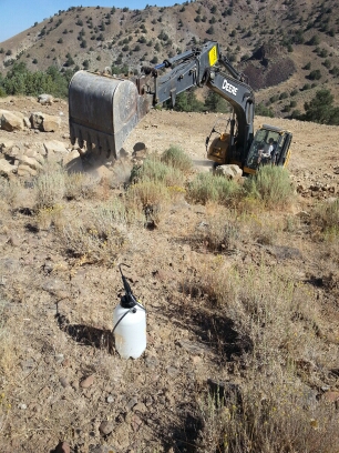 We use the generator (sitting behind the water barrels) to run the washer. The water pump we took out of our trailer is hooked up to a battery.