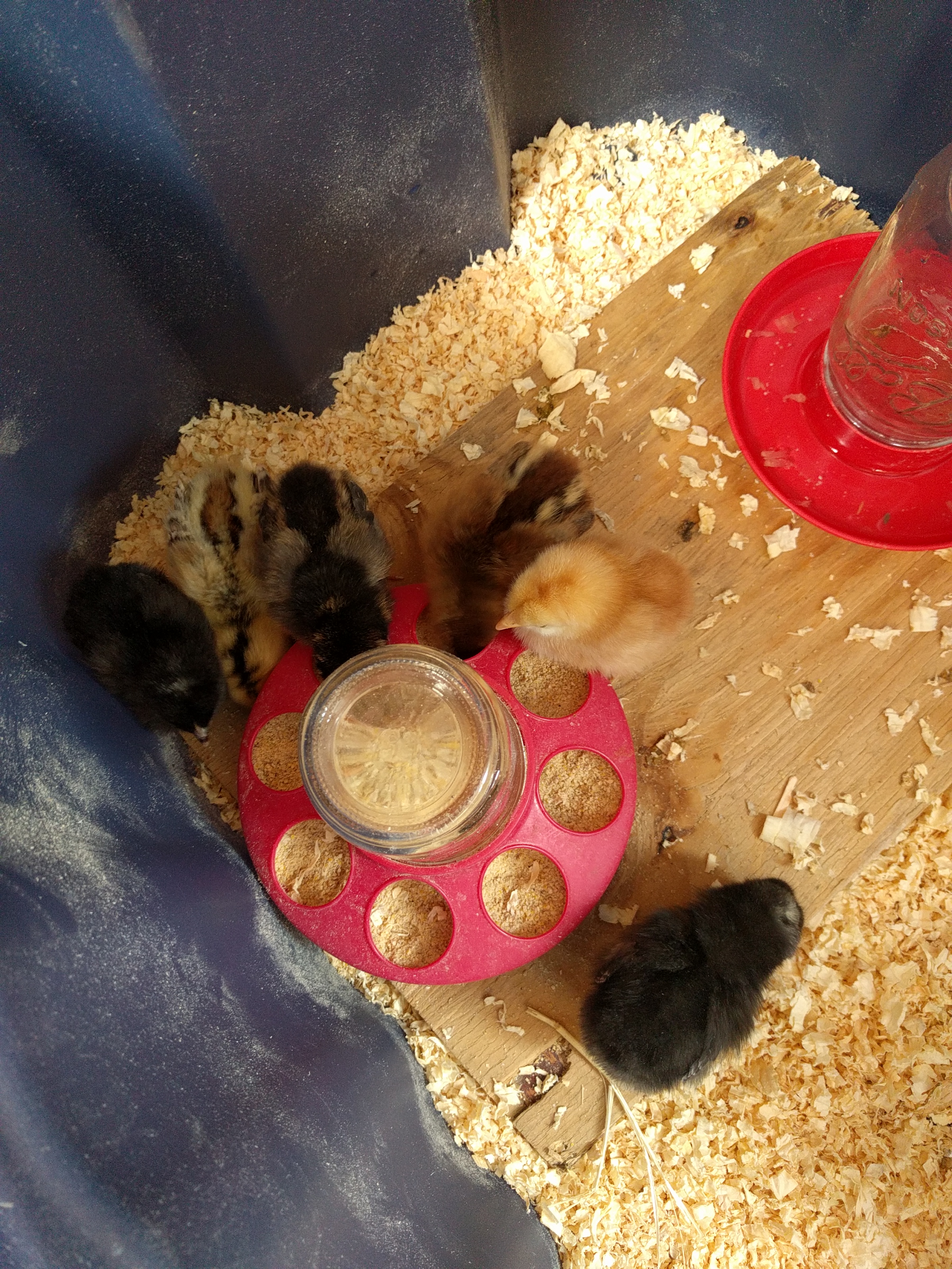 I’ll write up another post about how we have the brooder set up, and what we did until we got a heat source that would work on our off-grid solar system.
