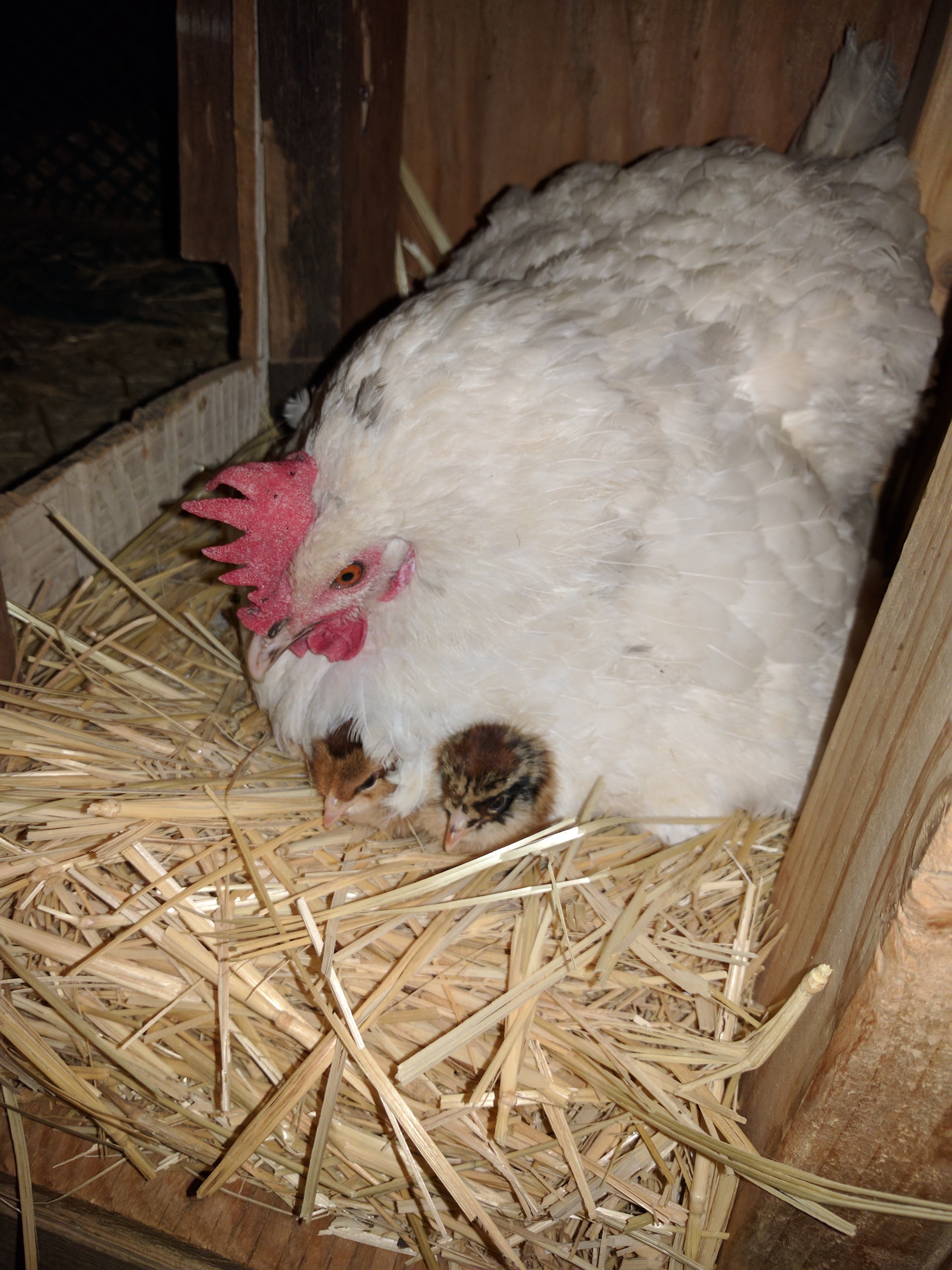 And she has been a great mamma. They are just over a week old now and have started roaming outside and even free-ranging with the flock.