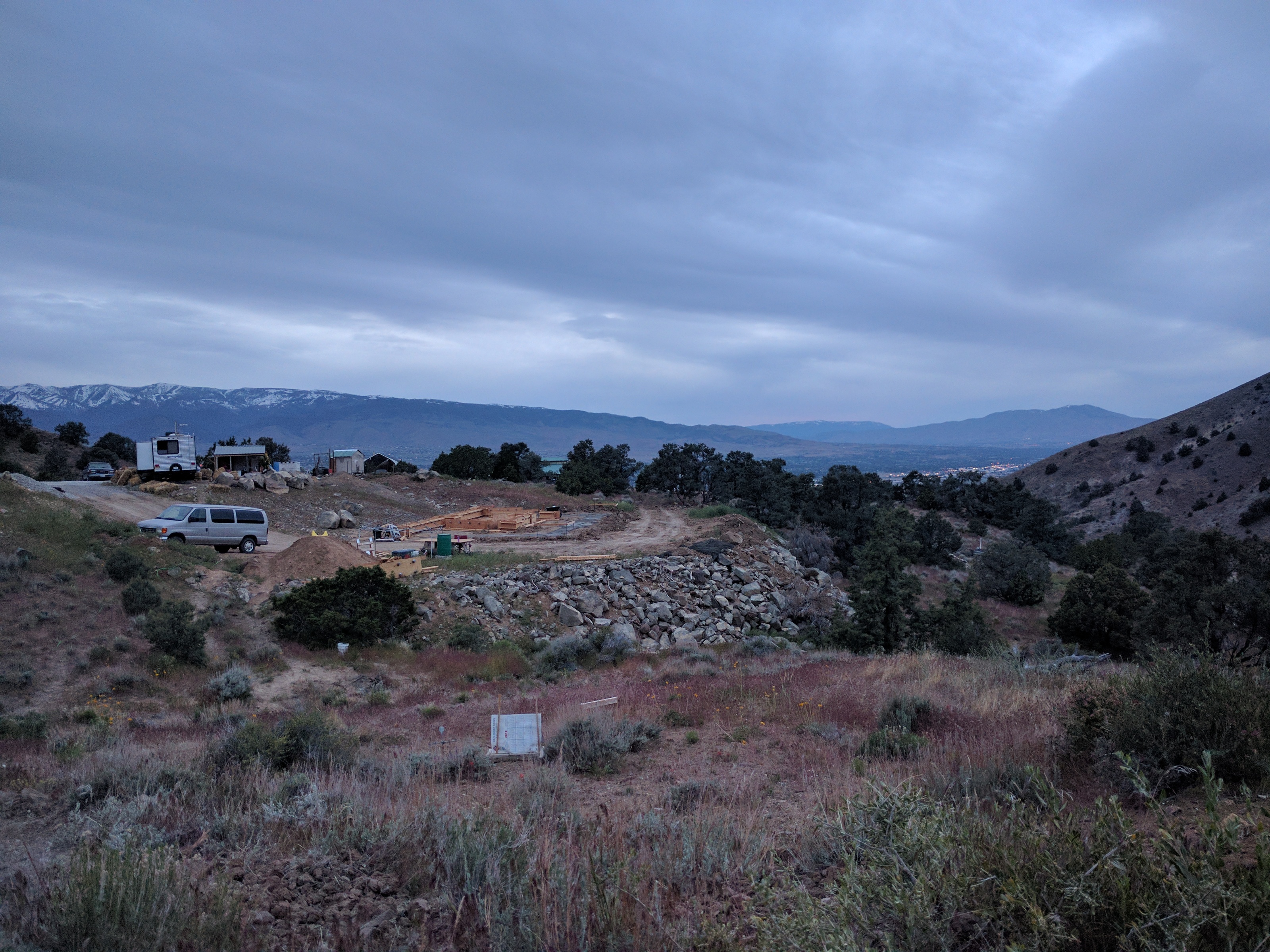 After pouring the concrete, we decided to watch the sunset from our new area for our Sunset Swing (finally moved it down to our new location). Unfortunately, it was too cloudy for a sunset, but the Hubs and I enjoyed sitting there as the light faded and looked at what we had accomplished. I’m sure many more pictures will be taken from this vantage point in the future.