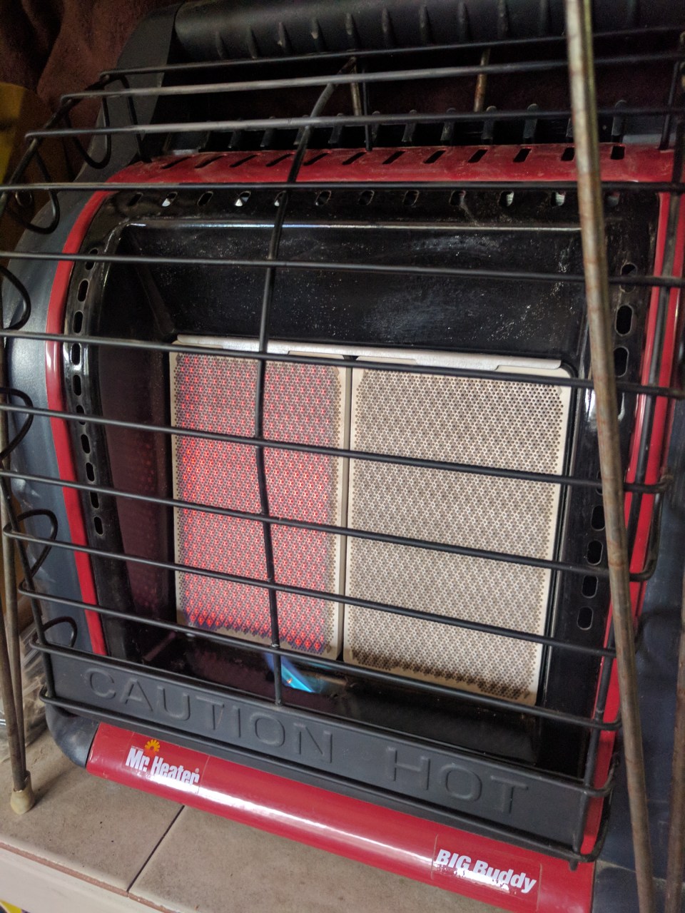 Tip #5 – Turn on the heat when you need to. So yes, we have a heat source in our trailer. And yes, we do use it when it gets cold. It is a propane fueled catalytic heater made by Mr Heater. The one we have is the Big Buddy.