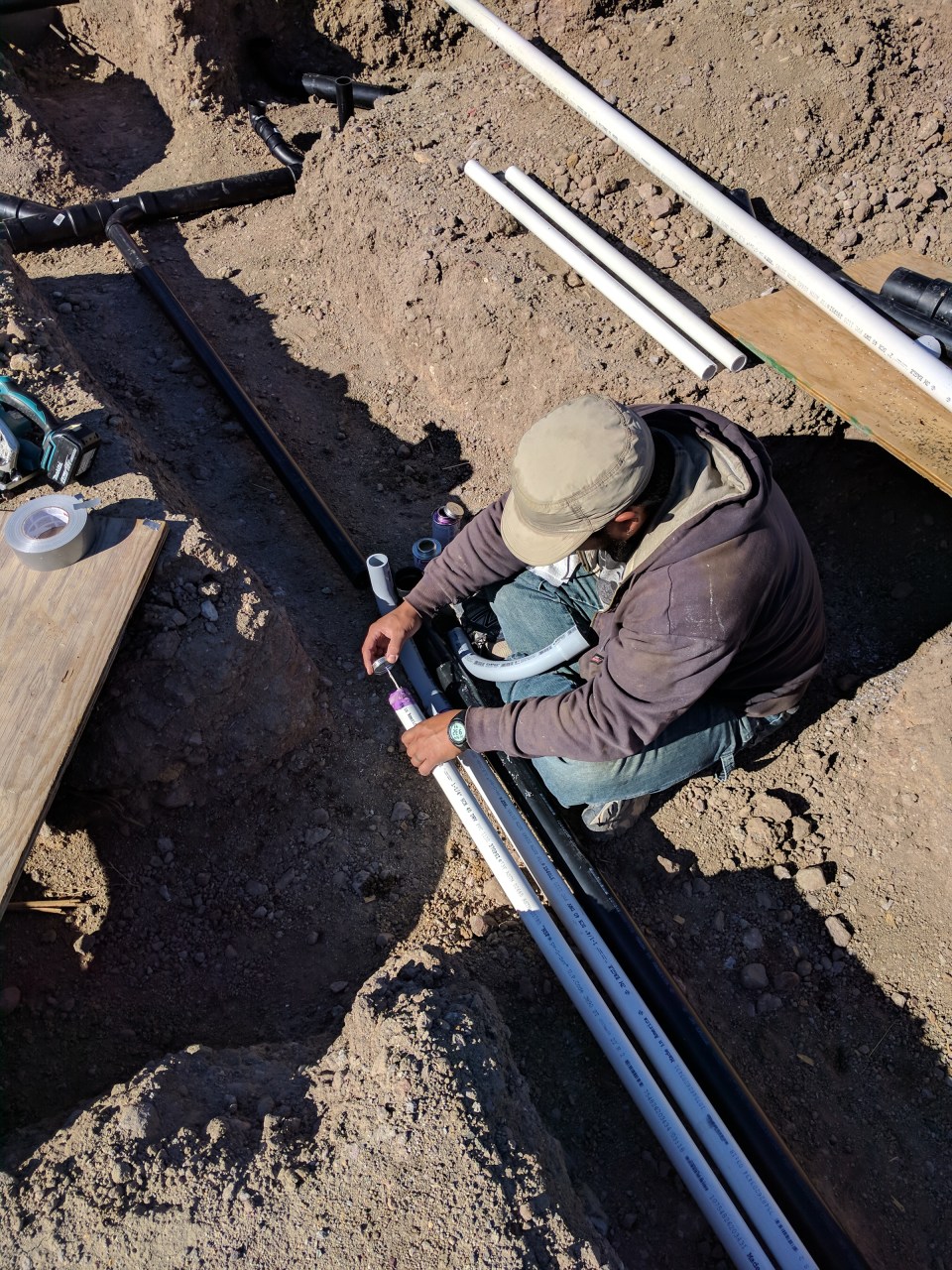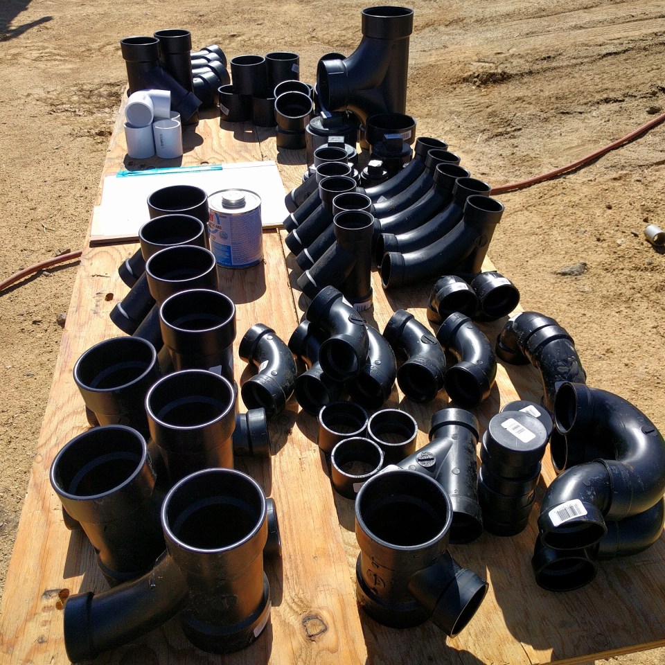 When we got the go ahead from our friend, we started gluing all the drain pipes and fittings together.