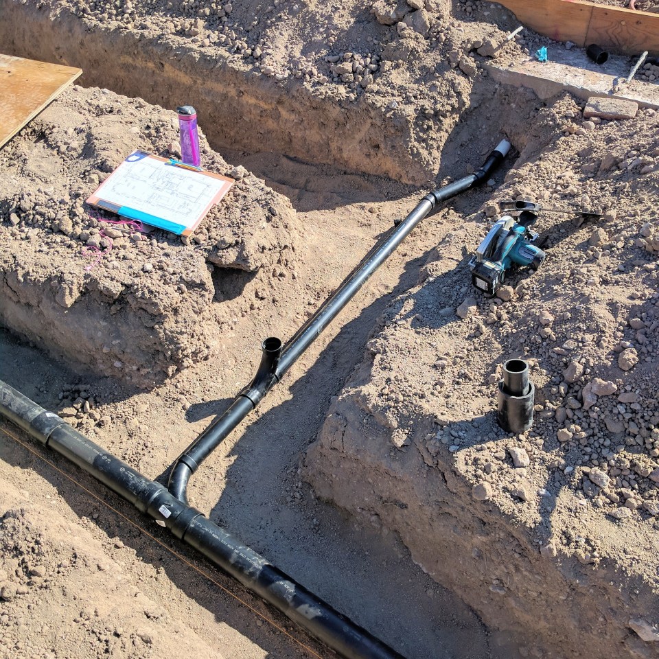 Once we got the trenches all dug and cleaned out, it was time to start on the drain piping.