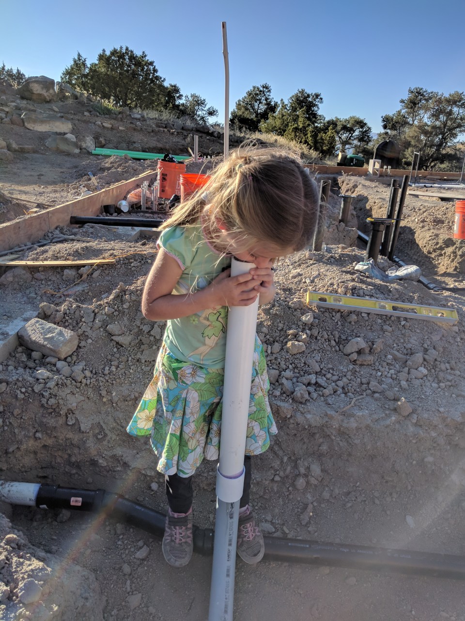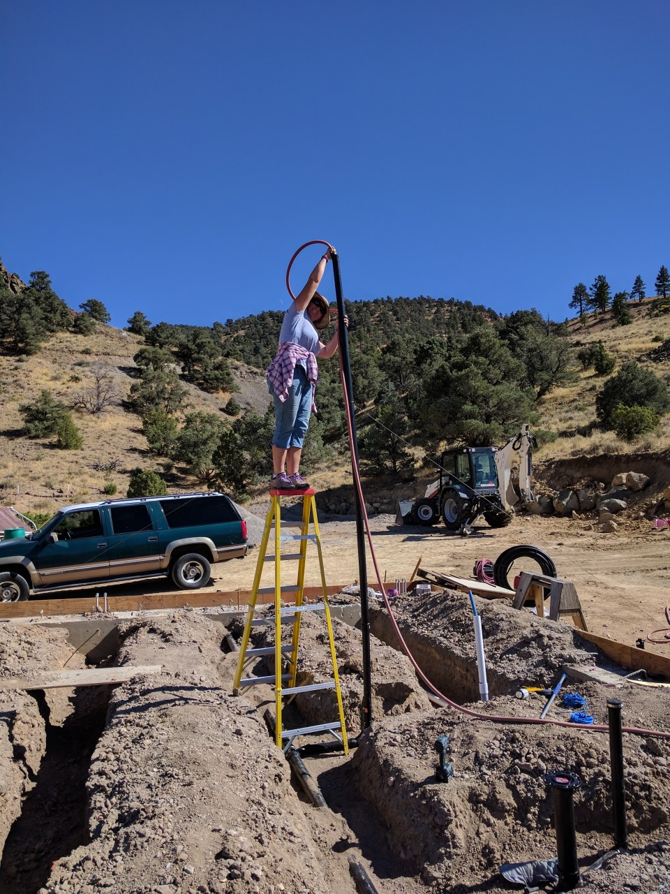 This line will eventually connect to an underground cistern which we will fill from our well pump.