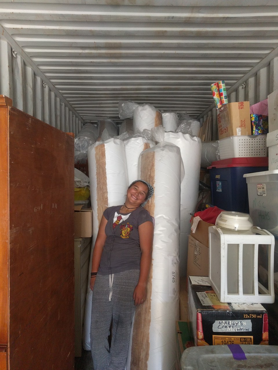 We carted all the rolls of insulation up our drive and to our cargo container. Hopefully in just about 2 weeks, we’ll have to cart it all down the the house pad. We don’t mind having to move it all twice if it means it’s going on the house next!