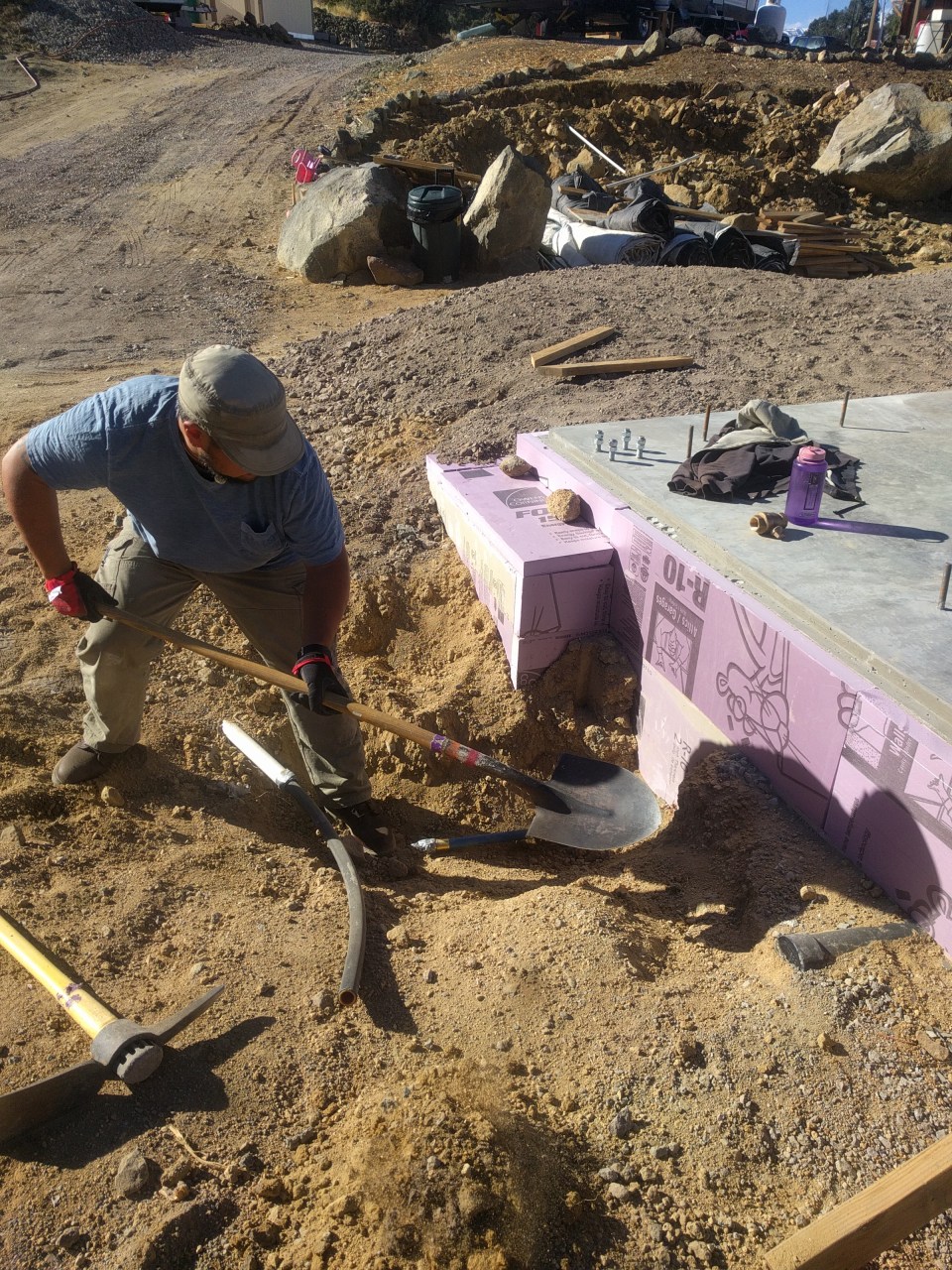 Once we got the foam on the sides of the slab, we could start having dirt trucked in.