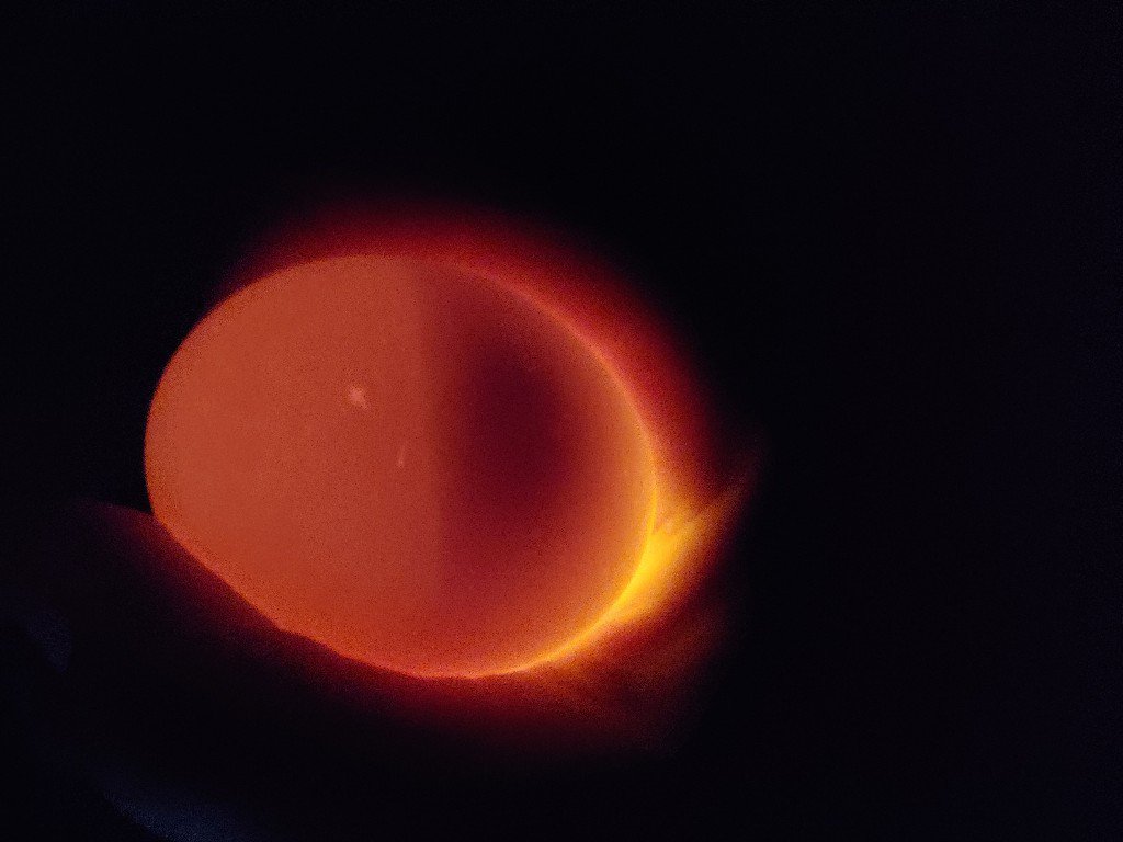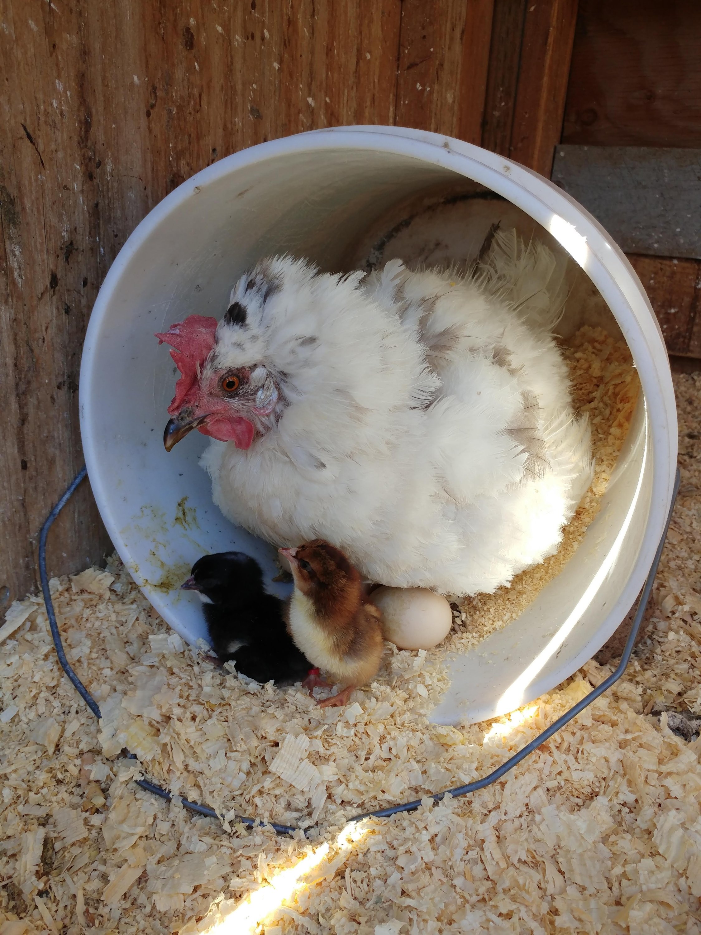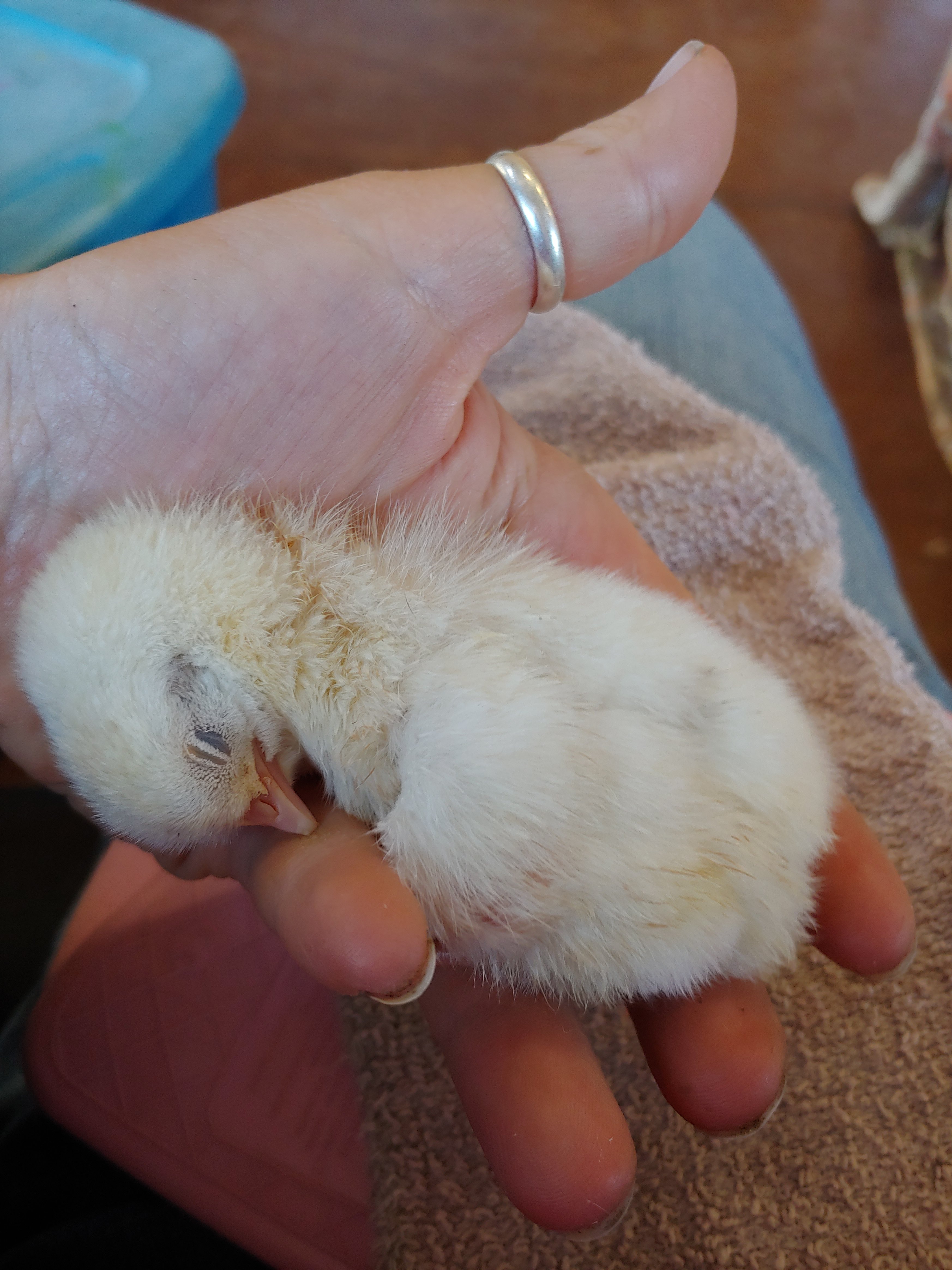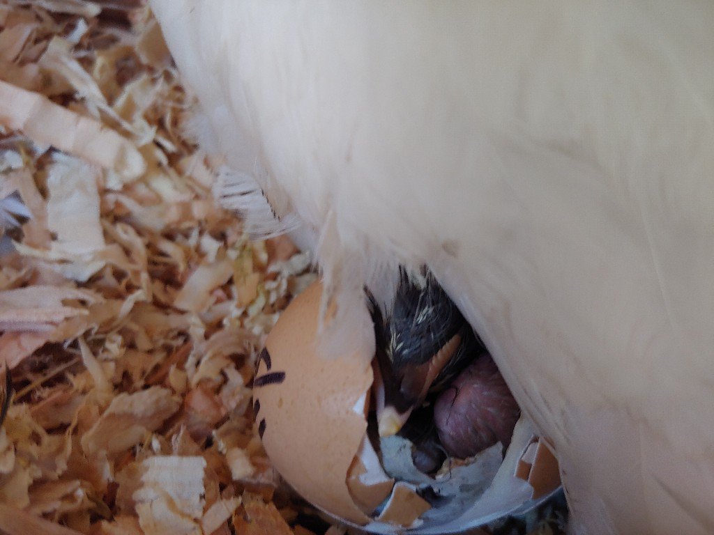 One egg had not developed, and one was missing (probably got broken). One of the remaining eggs will most likely not develop much further as the air sack is not in the correct position. Unlike in the picture above, the air sack is on the side, not at the end like it’s supposed to be. So, at most, we’ll get 9 chicks from that clutch, IF they all hatch. Considering last summer’s abysmal failures, I’m not counting my chicks until they hatch.