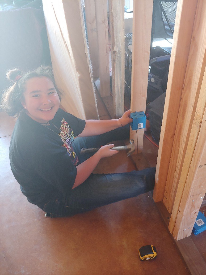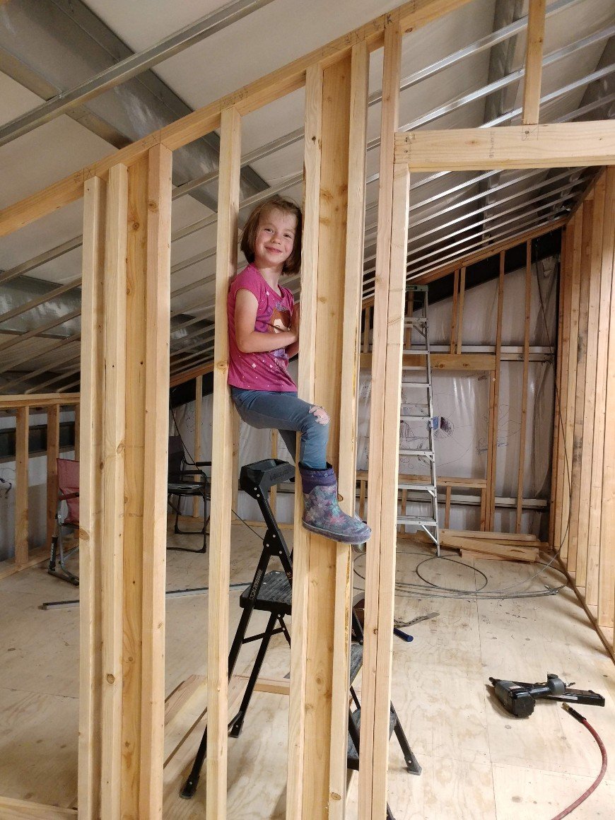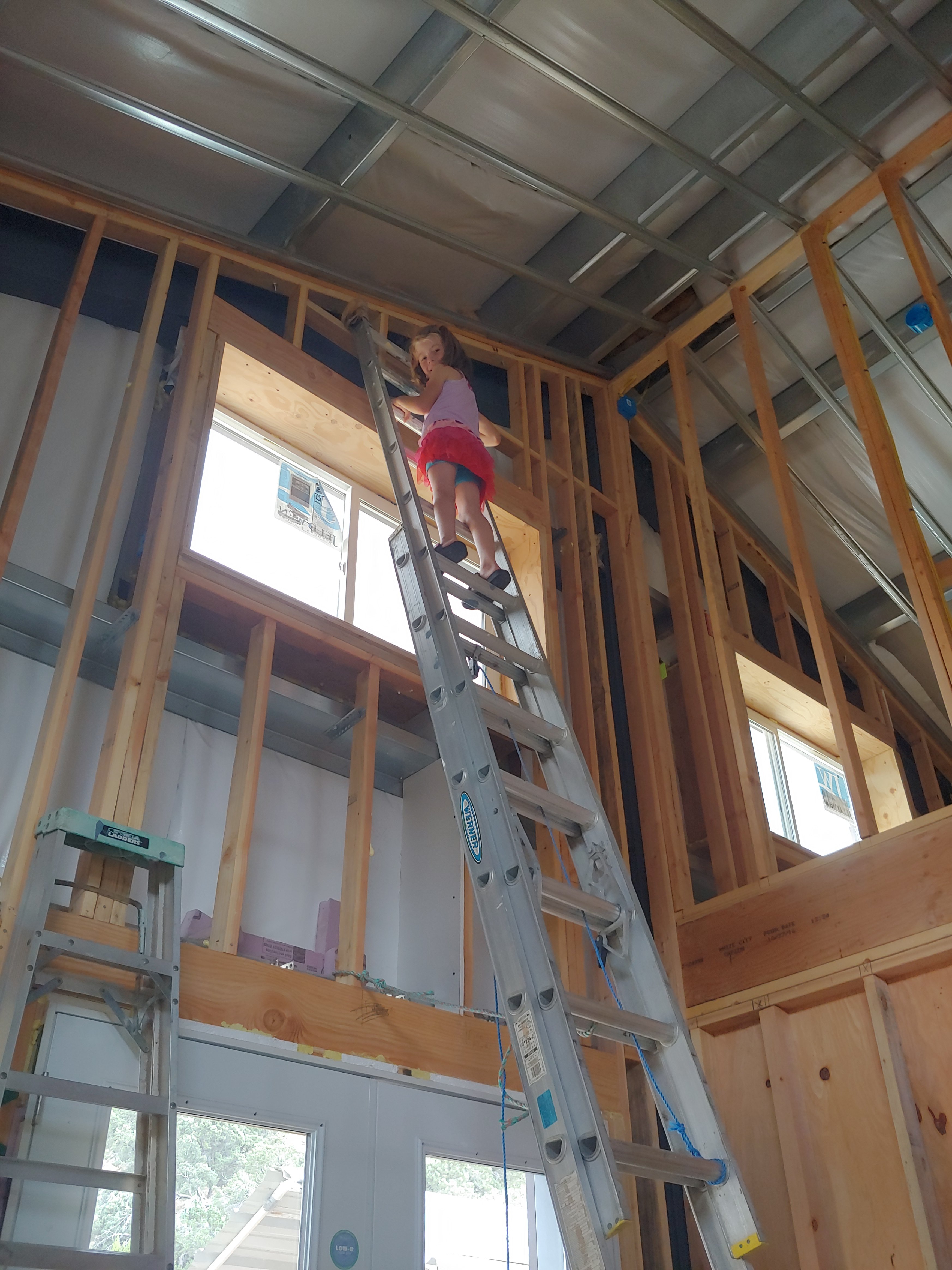 And that brings us pretty much up to date on the actual house!As I said in my last post, windows and doors pretty much ate up June. July was taken up with a family vacation. And August has been just little things here and there.Though we did figure out where all our outlets and light fixtures are gonna go!Princess Girl and I installed all the boxes.