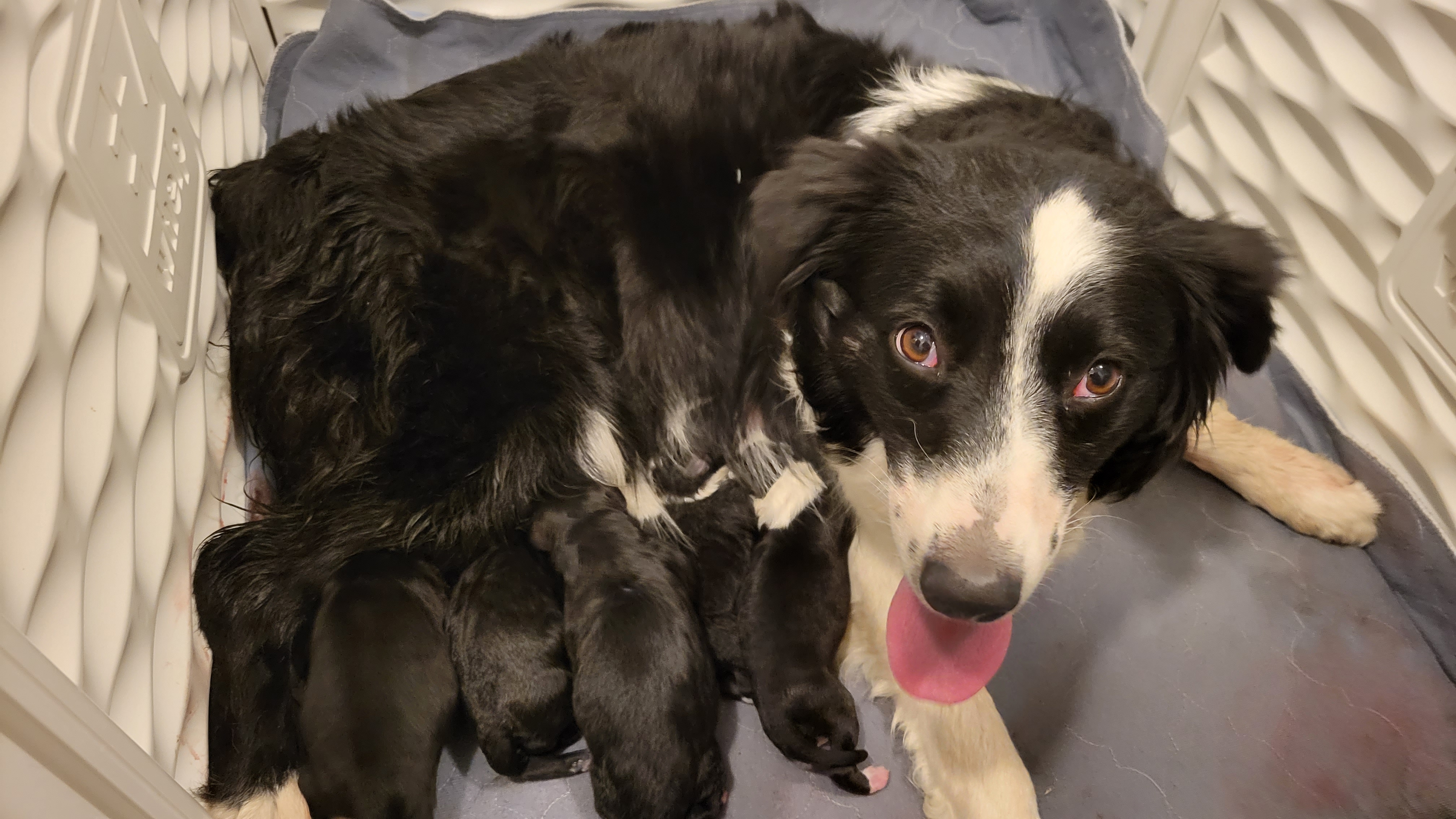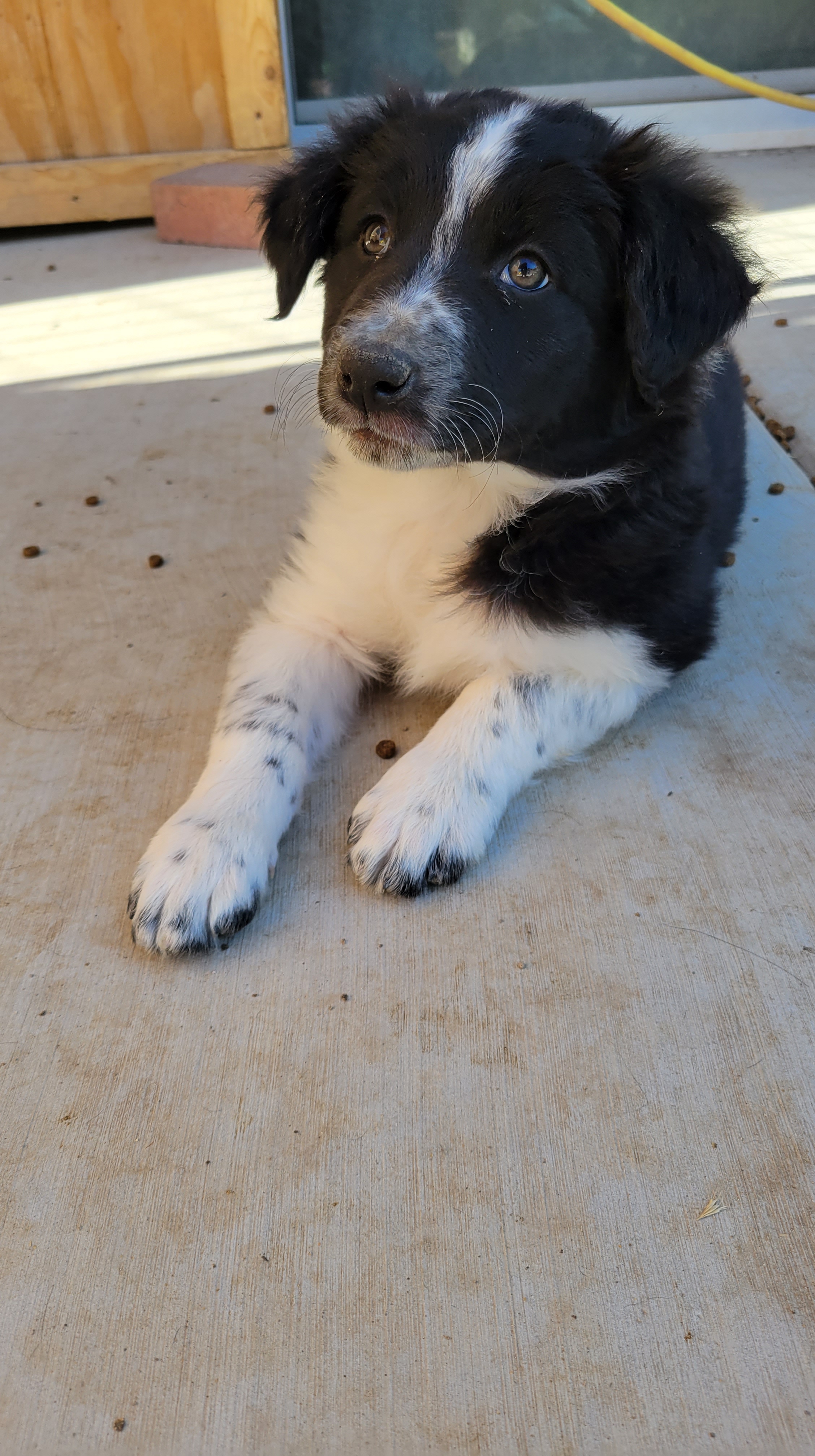 Our puppy daddy is Asher. He is a Border Collie from farm country in California. He is calm and attentive and so very smart. He weighs approximately 55lbs.