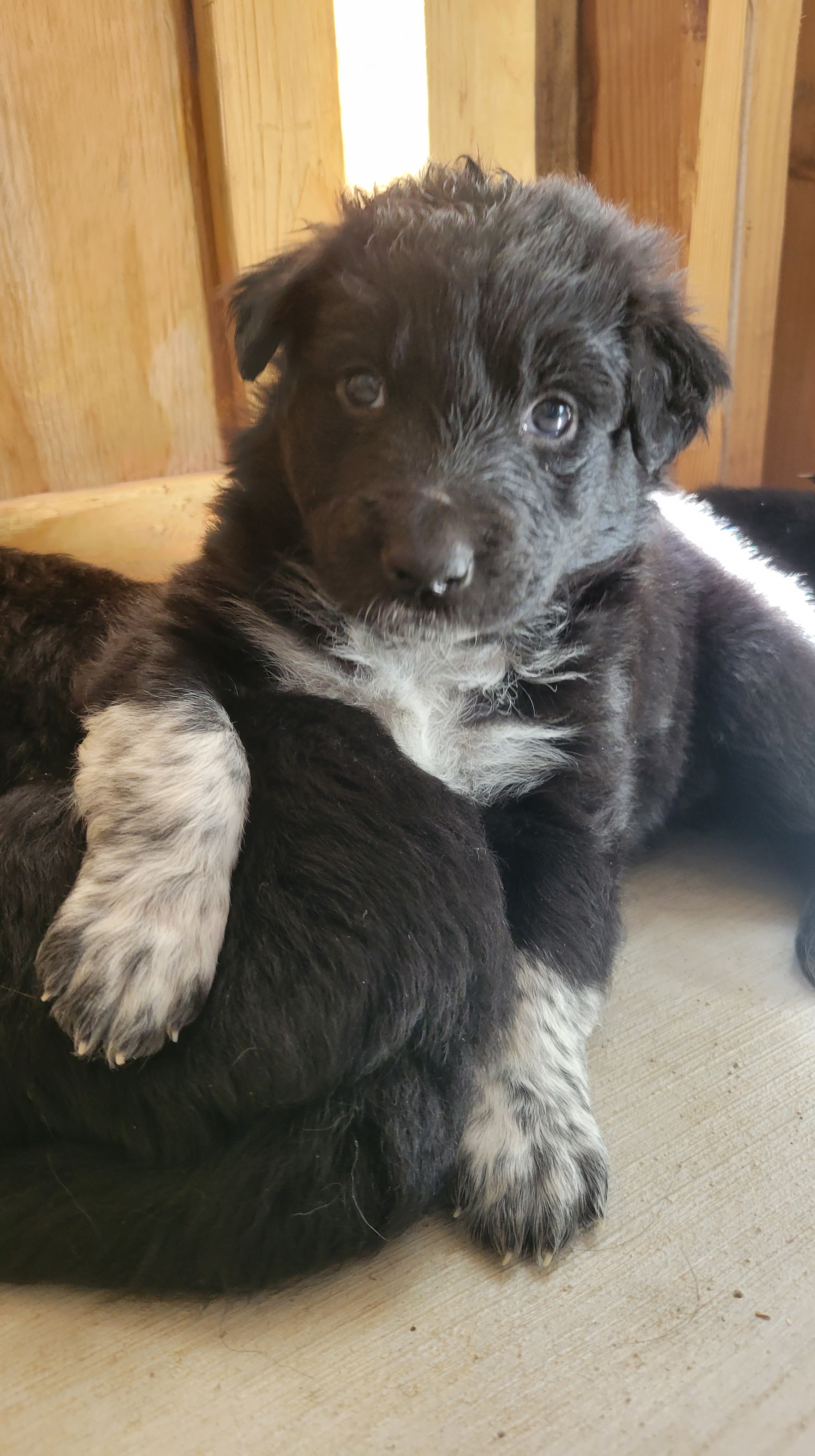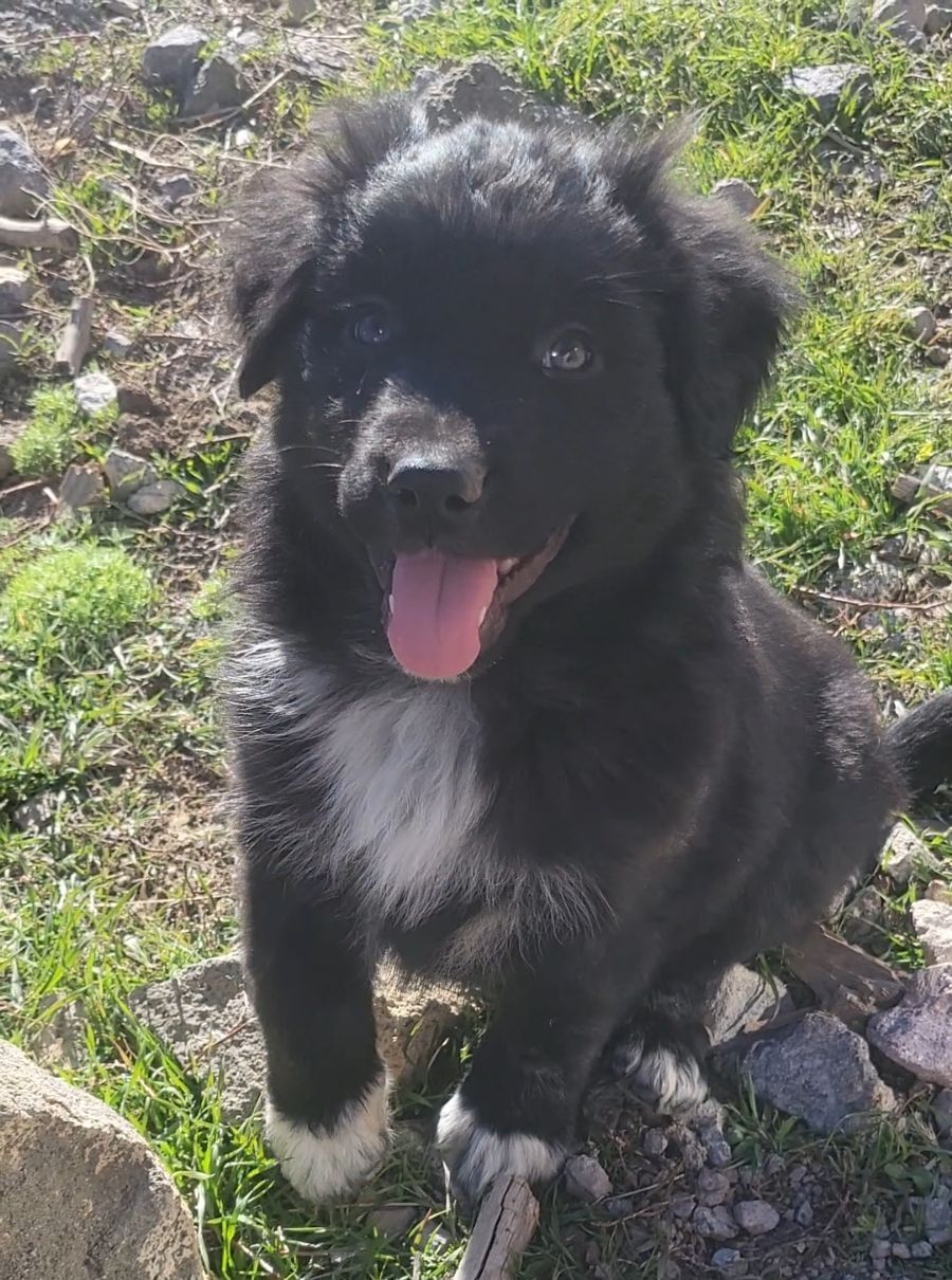 About the breed: a cross between Border Collies and Australian Shepherds, they are also sometimes called Aussie Collies. They are an active breed and thrive on hiking, running, and playing. They need room to run and get their energy out. If you live in a small space, they will need multiple walks/runs a day. They are loyal and intuitive and extremely smart. They are easily trained and learn tricks with willingness. They easily bond with their new families and often attach to one person in particular.