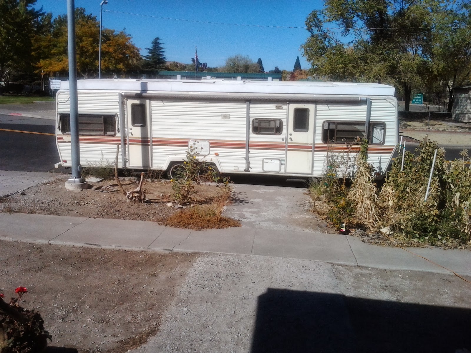 So, no, it’s not lush and green land (which is nearly unheard of here in Nevada) but it’s 40 acres and quiet and secluded AND close to town (see panorama above). And here’s the biggest deal, it’s my family’s land, so it’s already paid for (though there will be some sort of rent/mortgage to Mom). The only thing that’s been improved on the land is a driveway and house pad cut. Which means we will need to have a well dug, bring in power of some sort, improve the driveway, AND build a house. All on a cash basis, so it’s gonna take a while. But that’s why we bought the trailer. By living in the trailer on the land while we are building, we cut out a lot of our current living expenses (minimal rent, no electricity to pay for since we’ll be on solar, etc.)