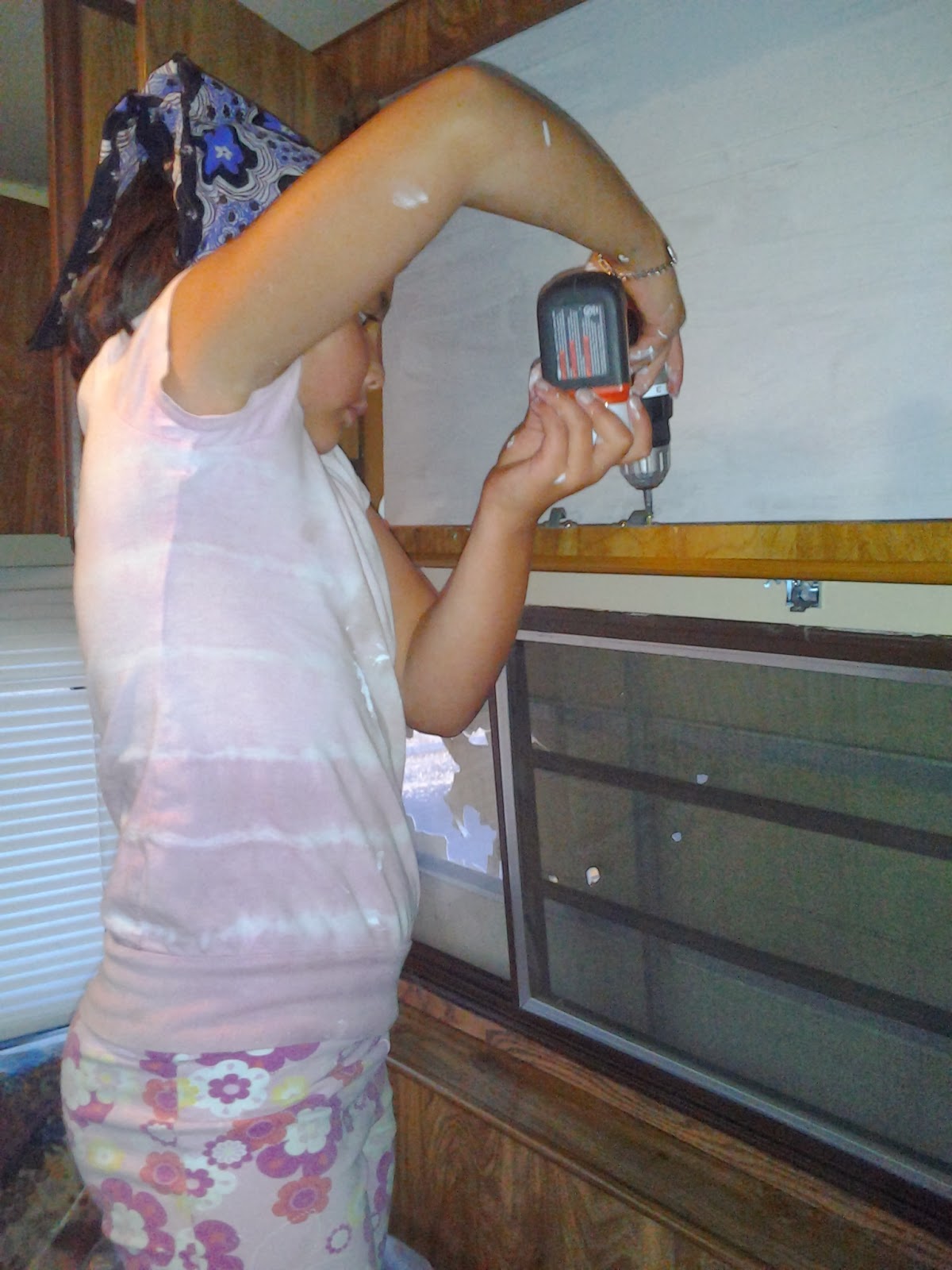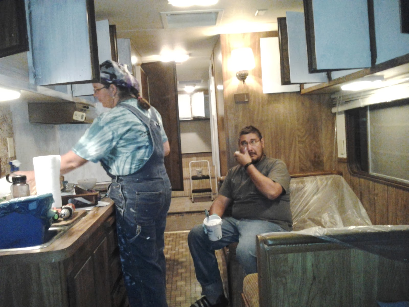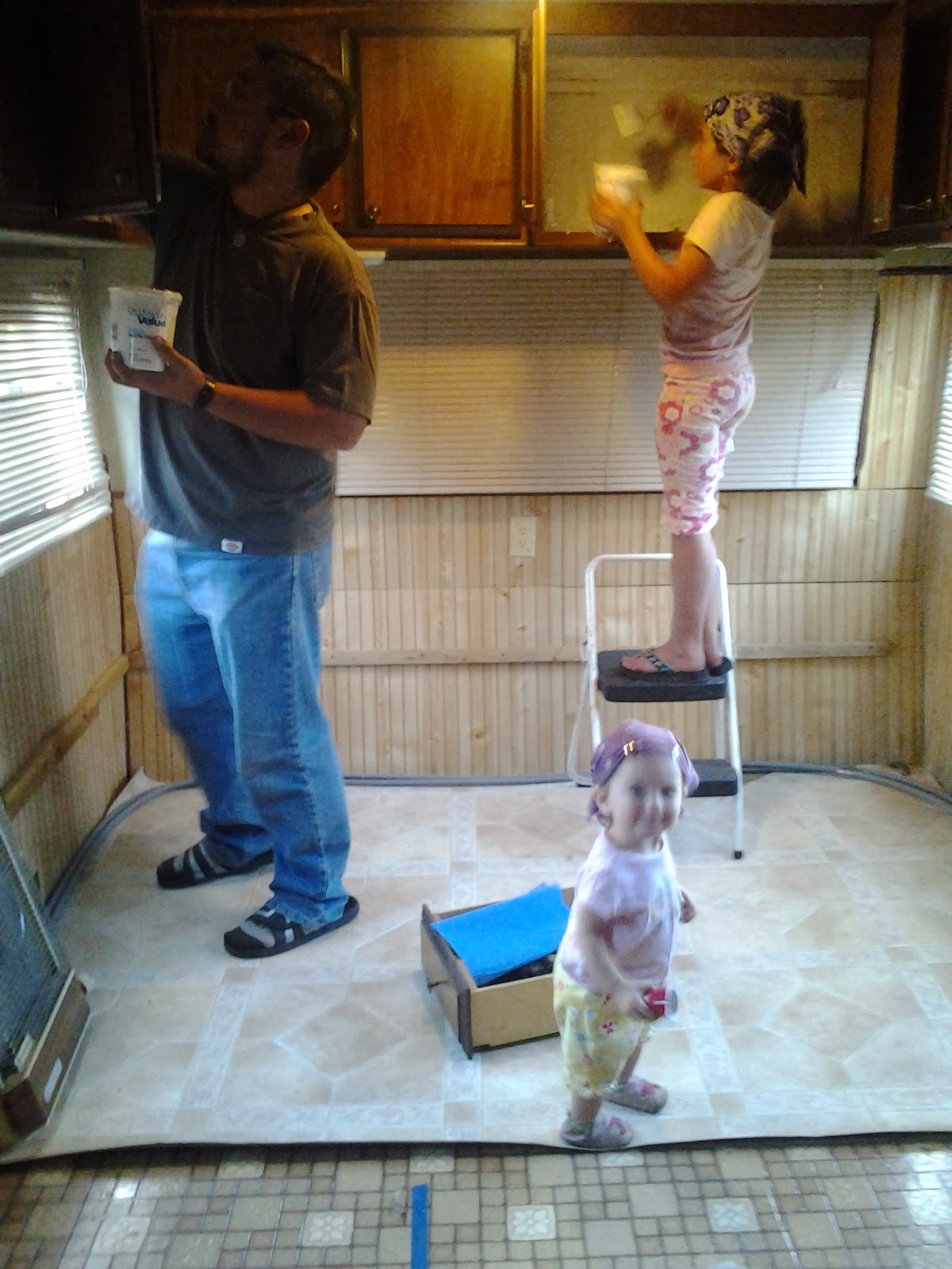 We started painting the trailer. So far, we have a coat of primer on most surfaces (even some of those surfaces that did not need paint on them!). It’s interesting painting with a 12 month old hanging around and an almost-eight-year-old helping. Let’s just say that we found out that latex primer does not come out of baby hair very easily. We have another bucket of primer sitting in the house and we’ve chosen colors and bought wood to make the bed frames. And this coming week we should actually have some time to work on these projects. We had a meeting with my parents to hash out some of the logistics in moving to the property: where my handicapped brother who currently lives with us will live while we are in the trailer, if we can use their shower and get water from them, etc, etc, etc.) We also figured out that we are going to put the house we are currently living in on the market this spring. So not only do we need to get our new home ready to live in, but we have to clean, finish projects, and downsize in our current home. Whew! Gonna be a crazy winter!