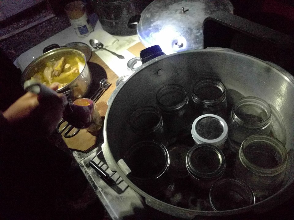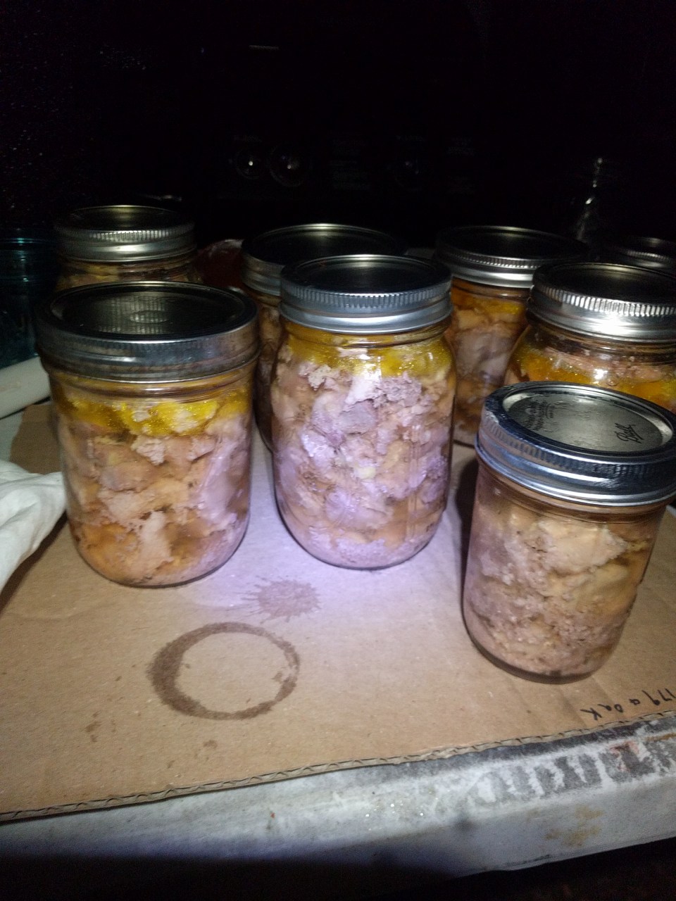 Spoon ½ cup mushroom mixture into hot, sterilized jars. Fill remaining space in each jar with hot chicken broth, leaving 1 inch headspace. Put on lids and process in a pressure canner for 45 minutes at 10lbs pressure (adjusting for altitude).