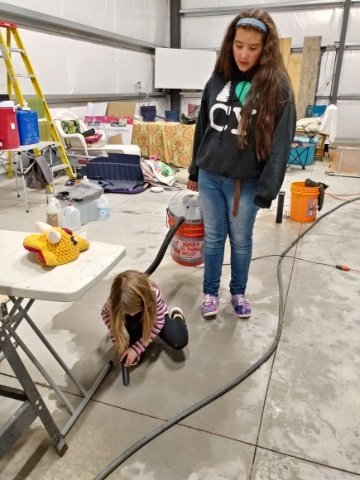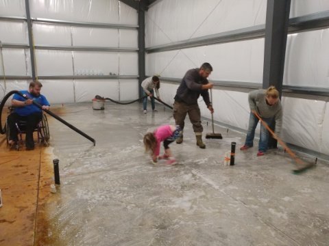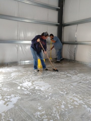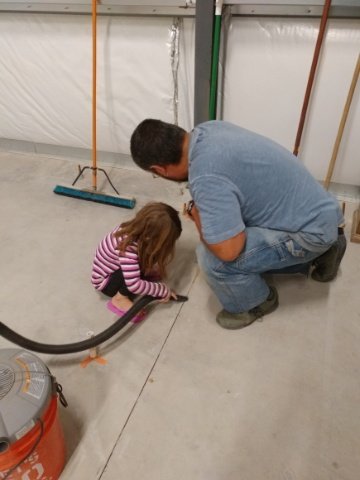 The next step was to make sure all the water was cleaned up. The easiest way to get all the water was to sweep and squeegee out the majority, then use the shop vacs for the remainder.