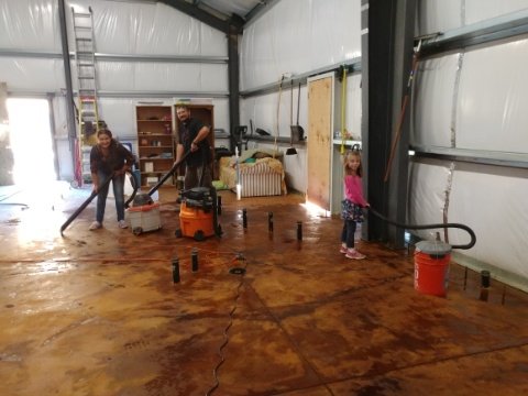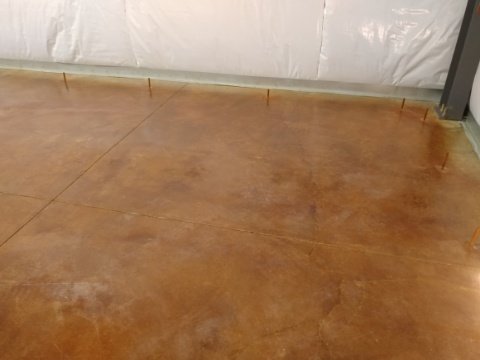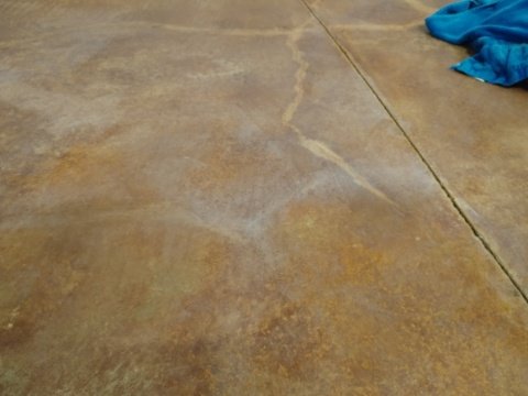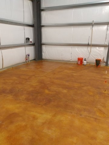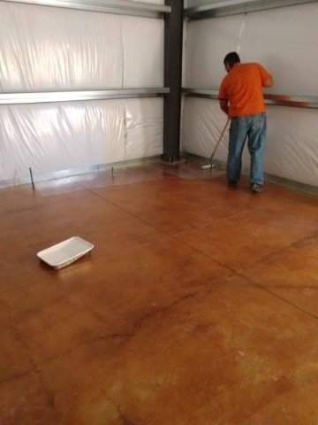 It took so long because we had no experience with acid staining concrete, and we did it in sections in order to test our procedures. So in some of the pictures below you might see areas that are already stained in the background.