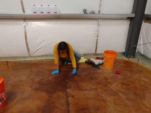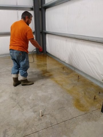 Once the floors were dry, it was time to apply the acid stain with a weed sprayer.