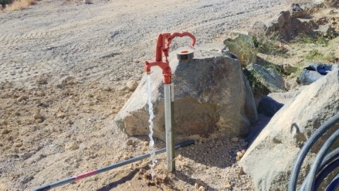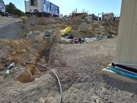Like our garden hose hydrant. We dug a trench (more trenching!) from where our water line crosses the driveway over to where we wanted the hose faucet next to the landscaping rocks.