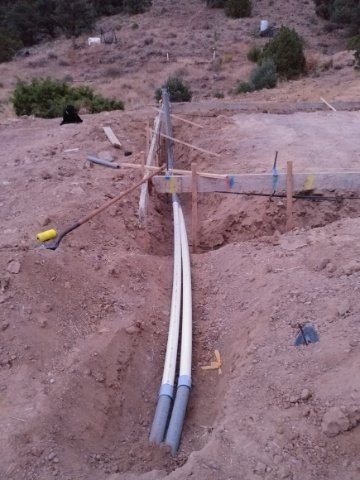 You can see in the pic above that the conduit was now several feet away from the wall of the garage. So, once the construction crew dug the footers, we came in and extended the conduit so it comes up inside the garage near the wall where our solar power system will be installed.