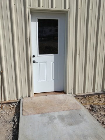 We could have had this door in place since January since it’s frame is part of the steel building, not the interior wood frame like all the other doors will be. But last winter and spring we were on hold with the house and the house only had this one wall anyway. And over the summer it wasn’t needed because of the weather. It was only when it got cold enough that we needed to stop the breeze from blowing through the house that we got our butts in gear and got it done.