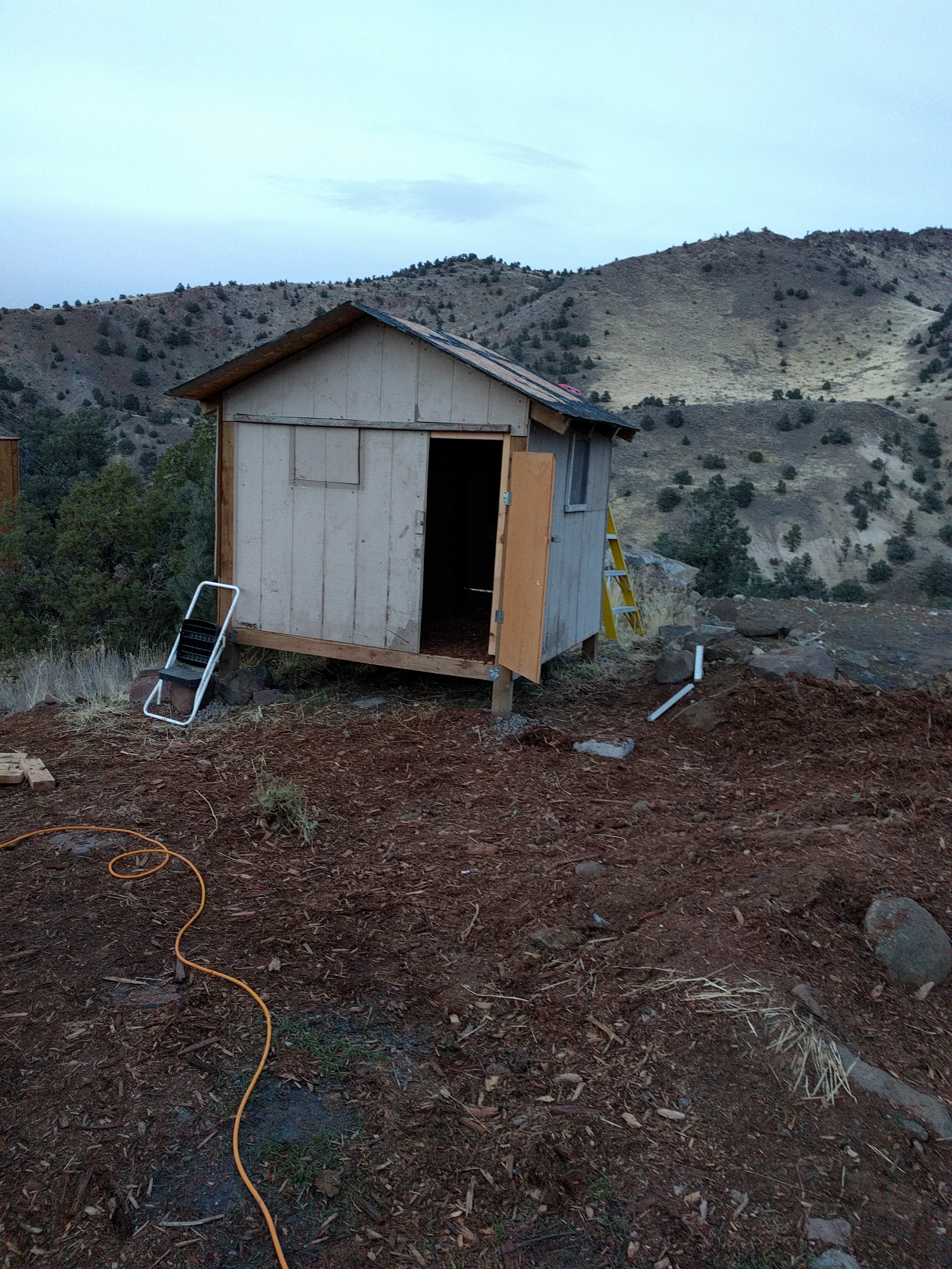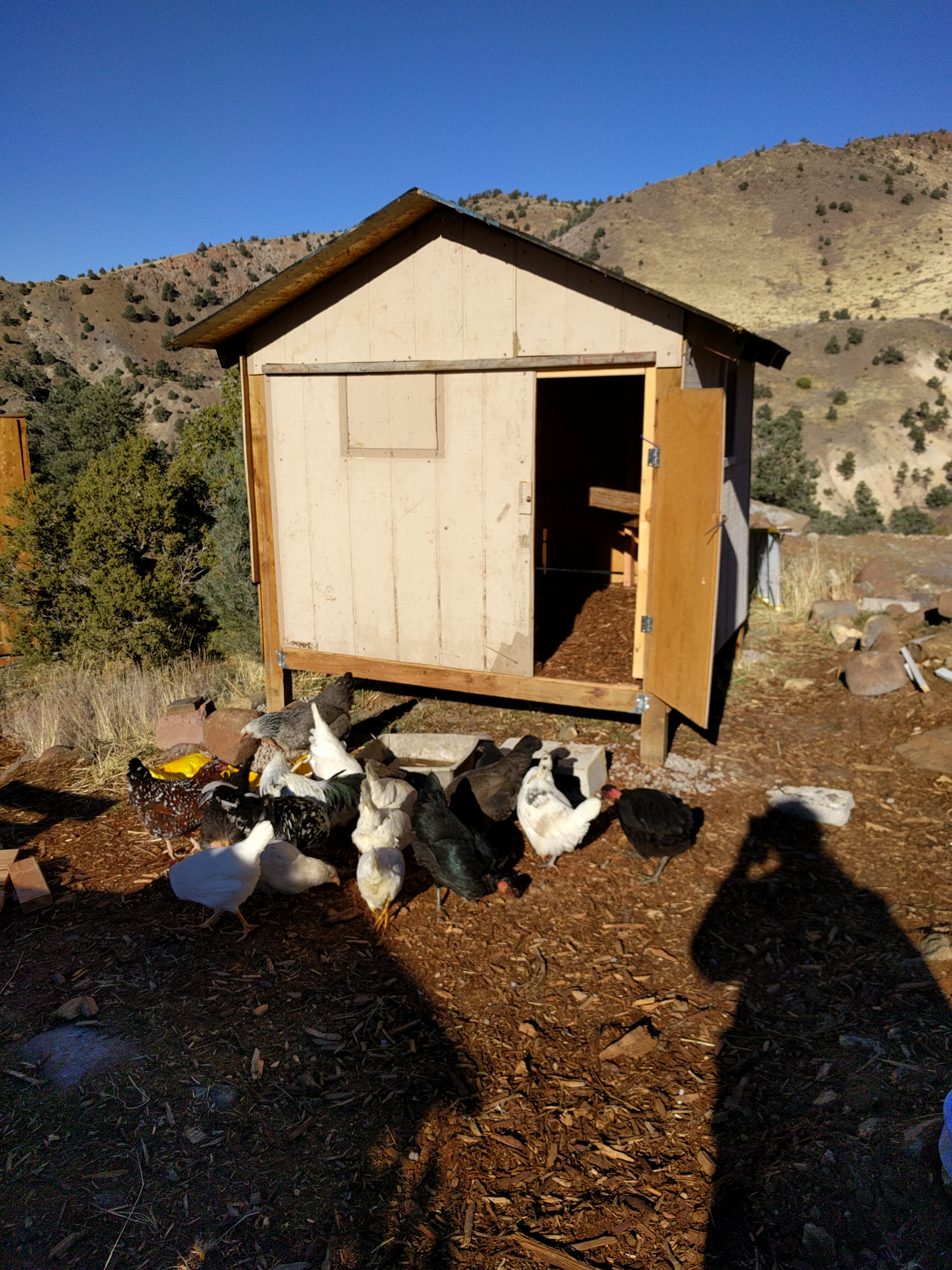 Over the course of a few days, I worked to get a coop up enough that the chickens would at least have a place to sleep.