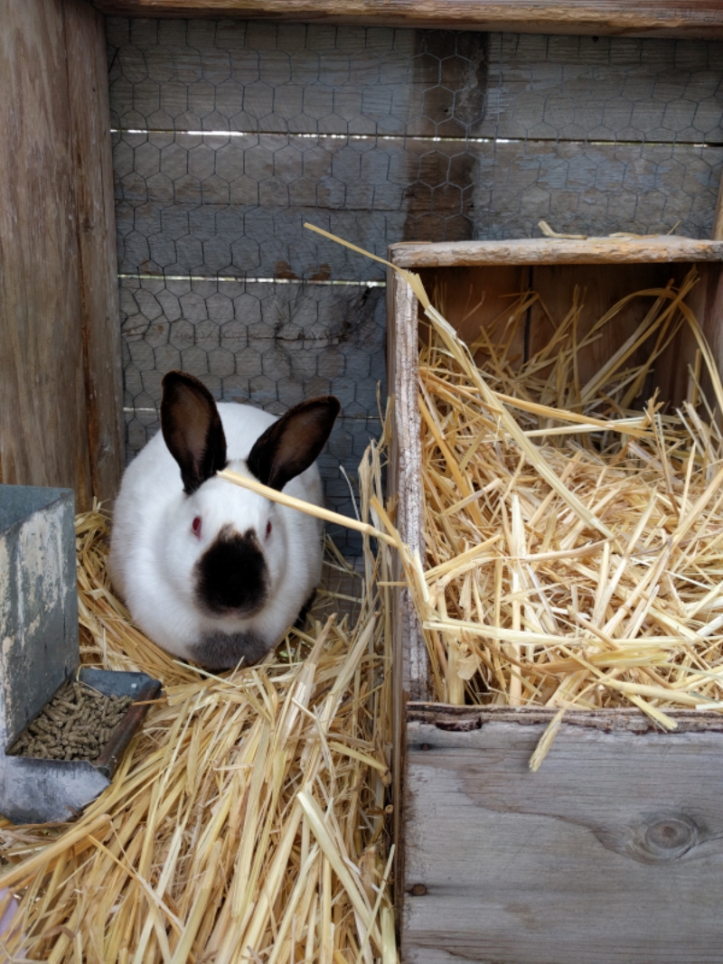 Switch is our other, younger, doe (female rabbit). We bred her to our solid black male, Vader, in the hopes of getting a solid black bunny or two. She has not stripped her fur yet, but some rabbits don’t prepare for birth until just before it happens, so we’re still hopeful that she is indeed pregnant.