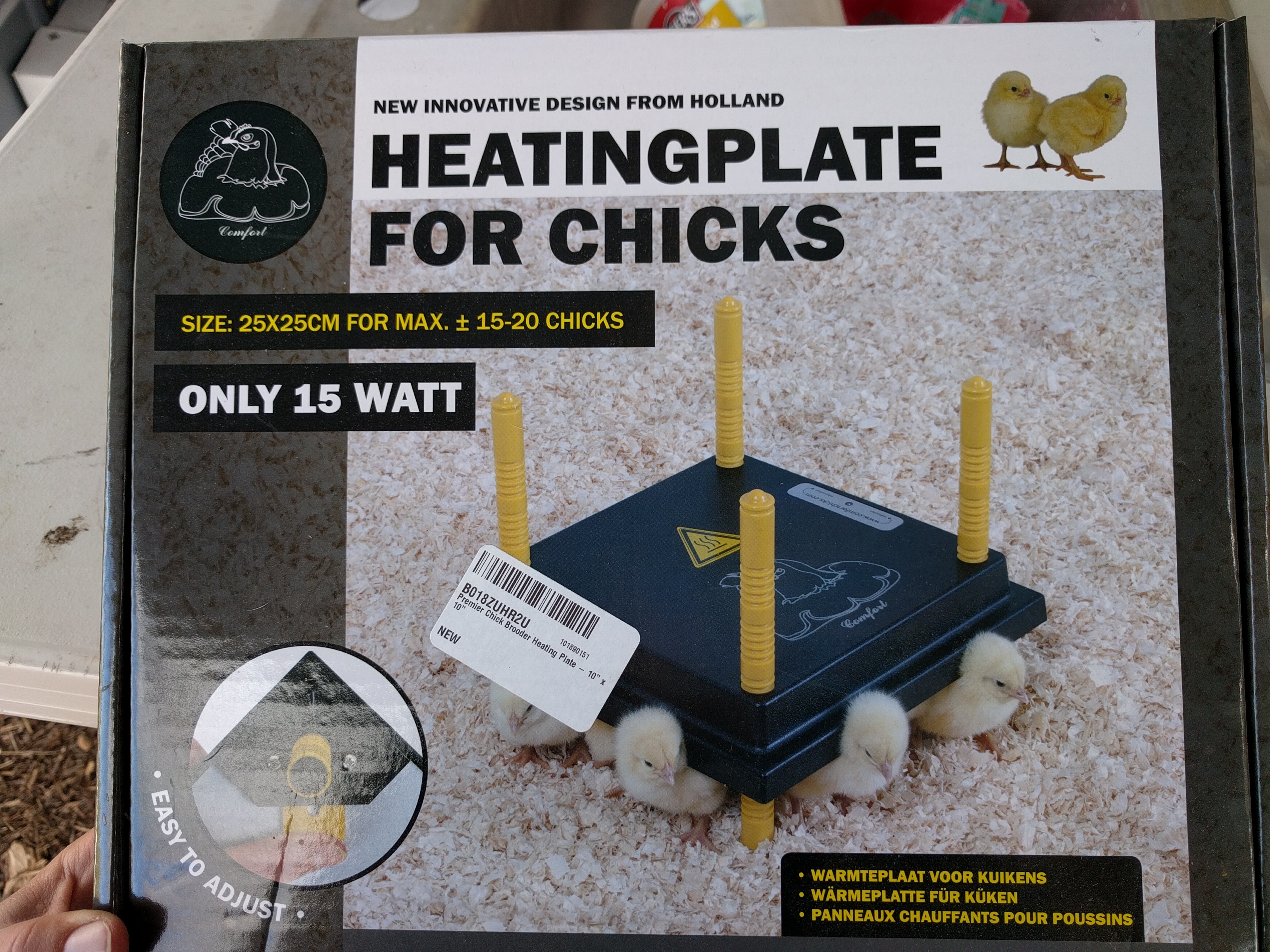 The under side gets to be about 110°F, just a bit warmer than a mamma hen. It’s easily adjustable in height to accommodate growing chicks, and advertised that it only takes 15 watts to run.